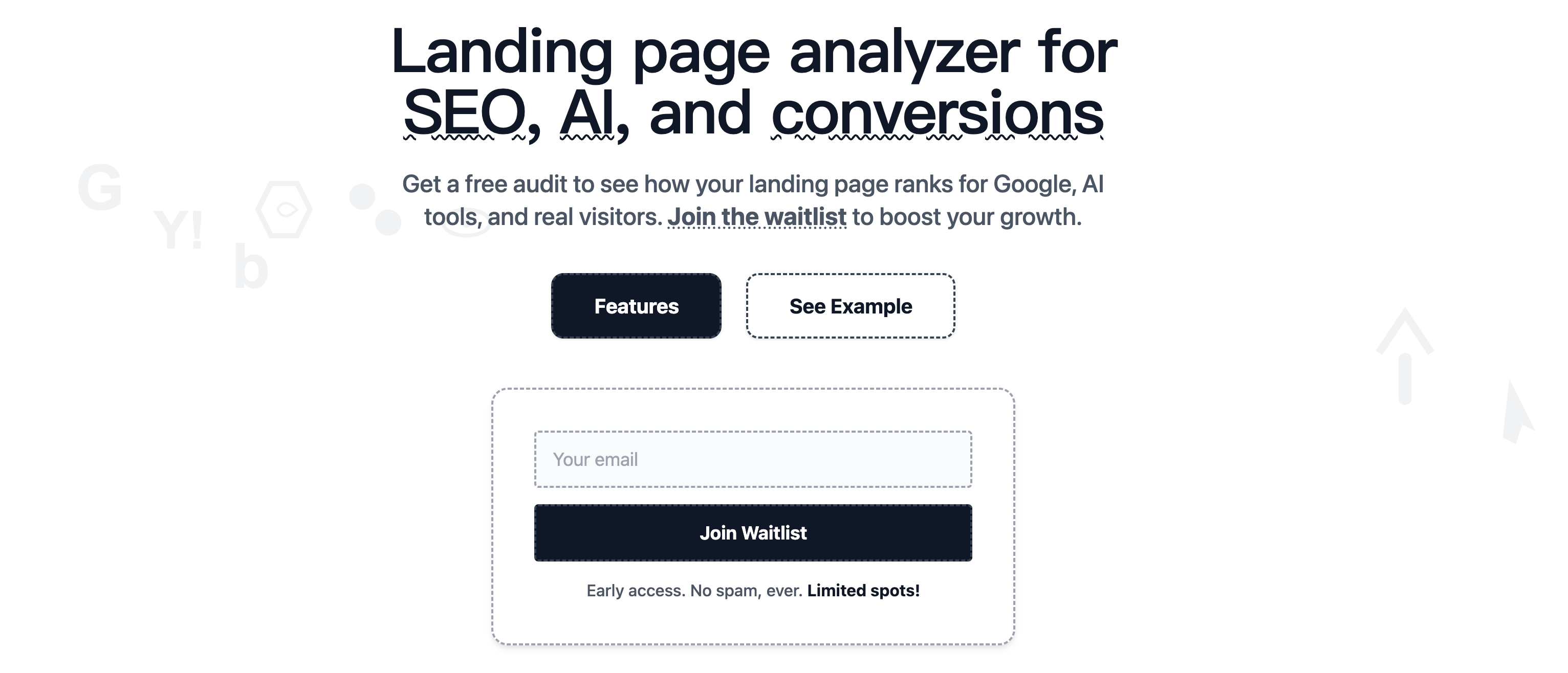 Landingsense是一款SaaS应用,通过SEO、LLM和心理学三个维度分析落地页,提供综合评分和改进建议,帮助创始人和营销人员优化页面表现。