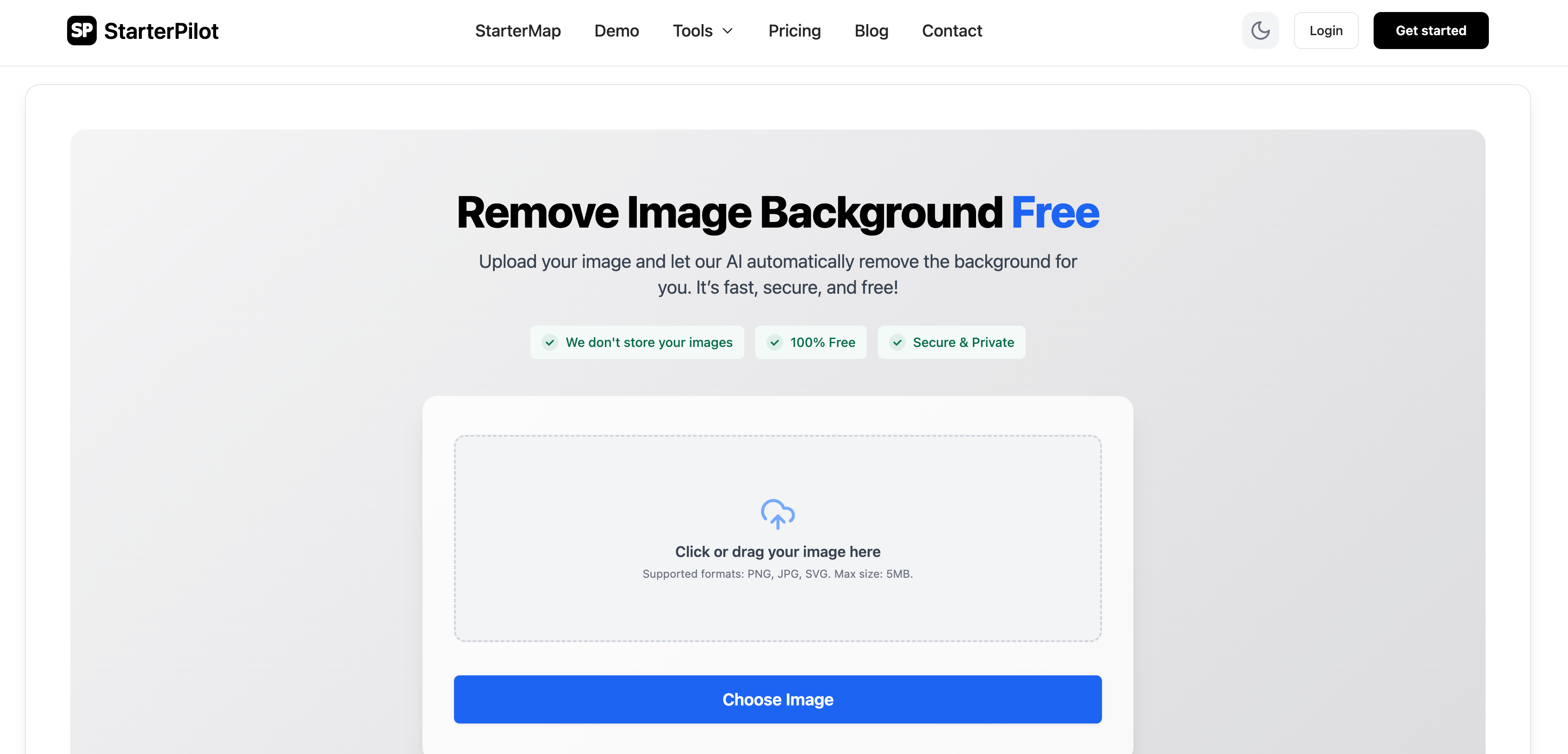 Starterpilot是一款免费在线图片背景移除工具,无需登录和水印,适用于人像和产品。