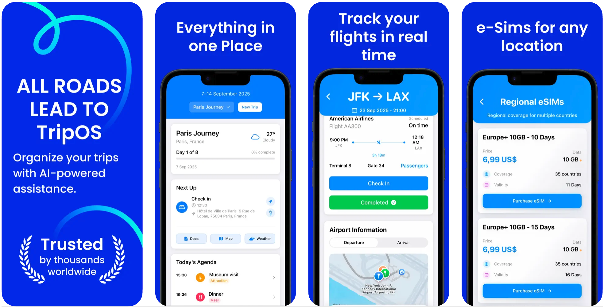 TripOS是一款免费的iOS旅行规划应用,整合行程管理、AI助手、预算管理、天气、文档存储和离线翻译等功能。