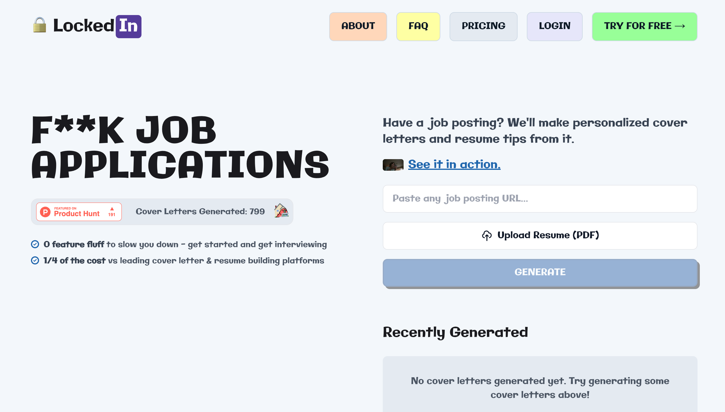 trylockedin是一款AI工具,根据职位URL自动研究角色并生成求职信。