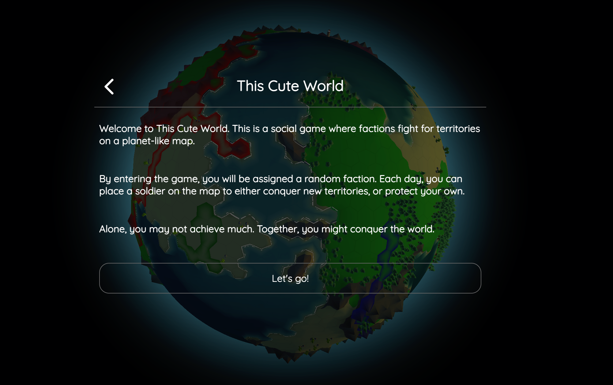 This Cute World是一款浏览器端社交策略游戏,玩家需在大社区中协作优化策略,扩展领土并参与每日的攻击和防守。