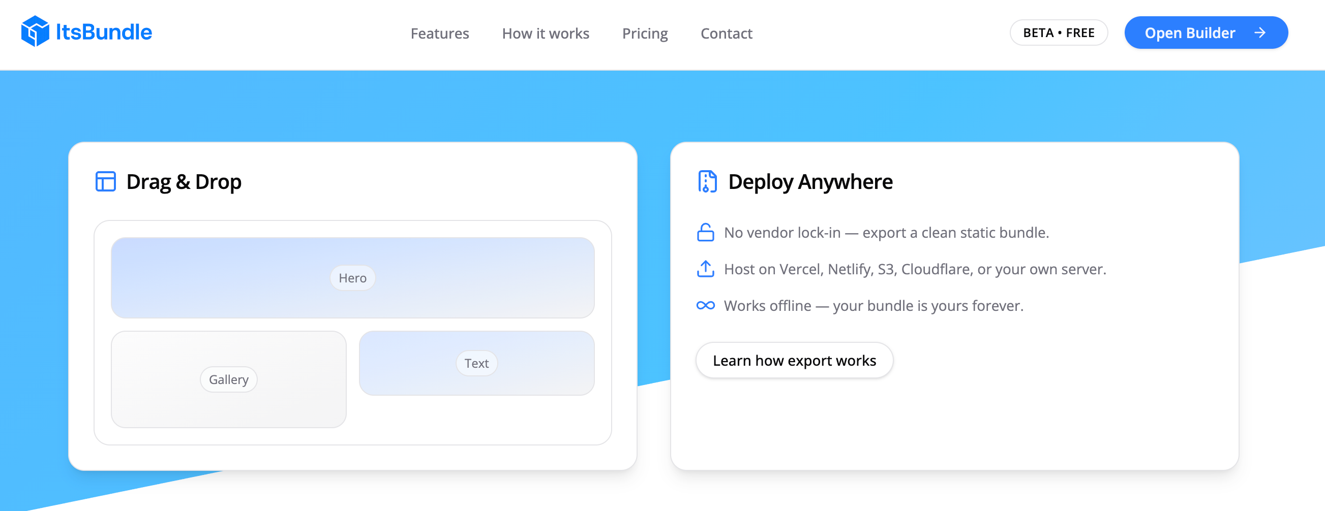 Bundle是一款网站构建器,生成可部署的静态Next.js包,用户可以将其部署到任何平台,避免厂商锁定。