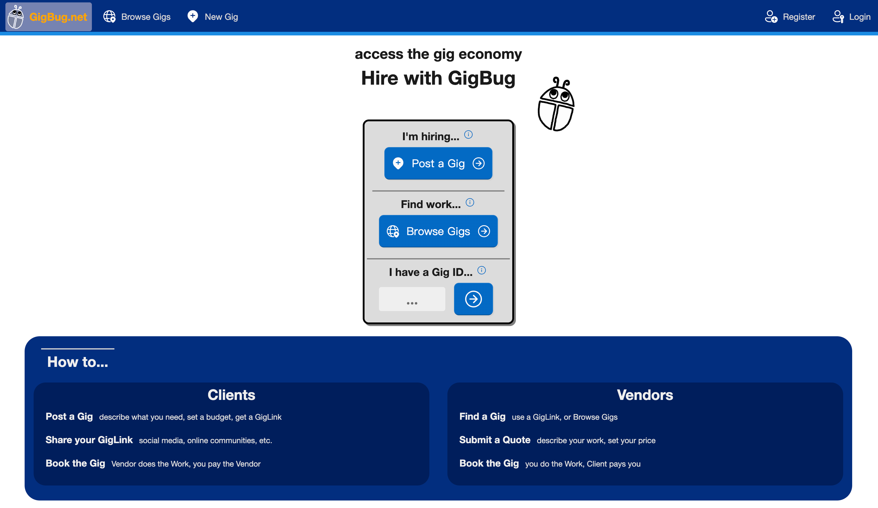 GigBug是一款为零工经济设计的市场平台,方便客户和供应商找到彼此完成零工工作。