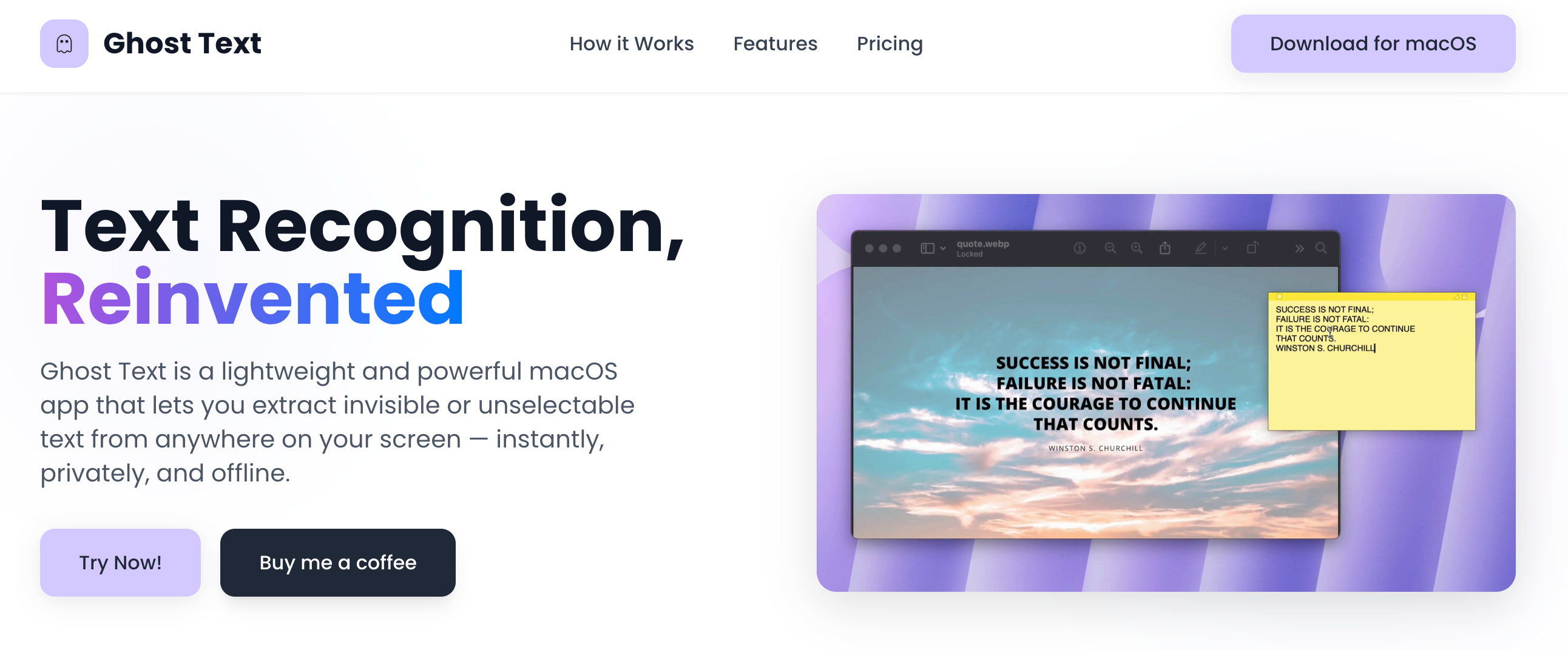 Ghost Text是一款macOS应用,帮助用户从不可选择的文本中复制文字。