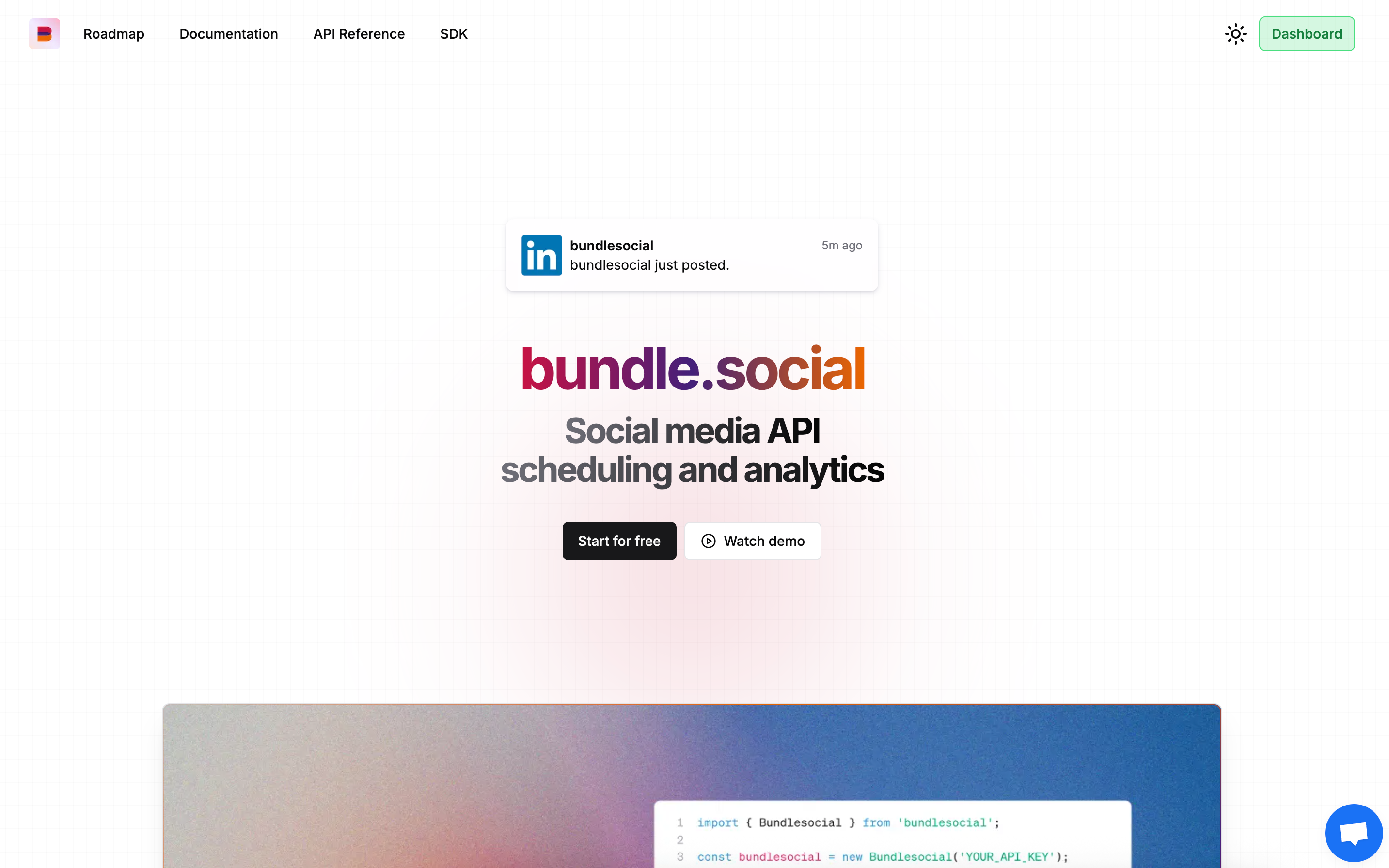 Bundle Social是一款社交媒体API,自动化将产品照片发布到多个社交平台,支持12个主要平台。
