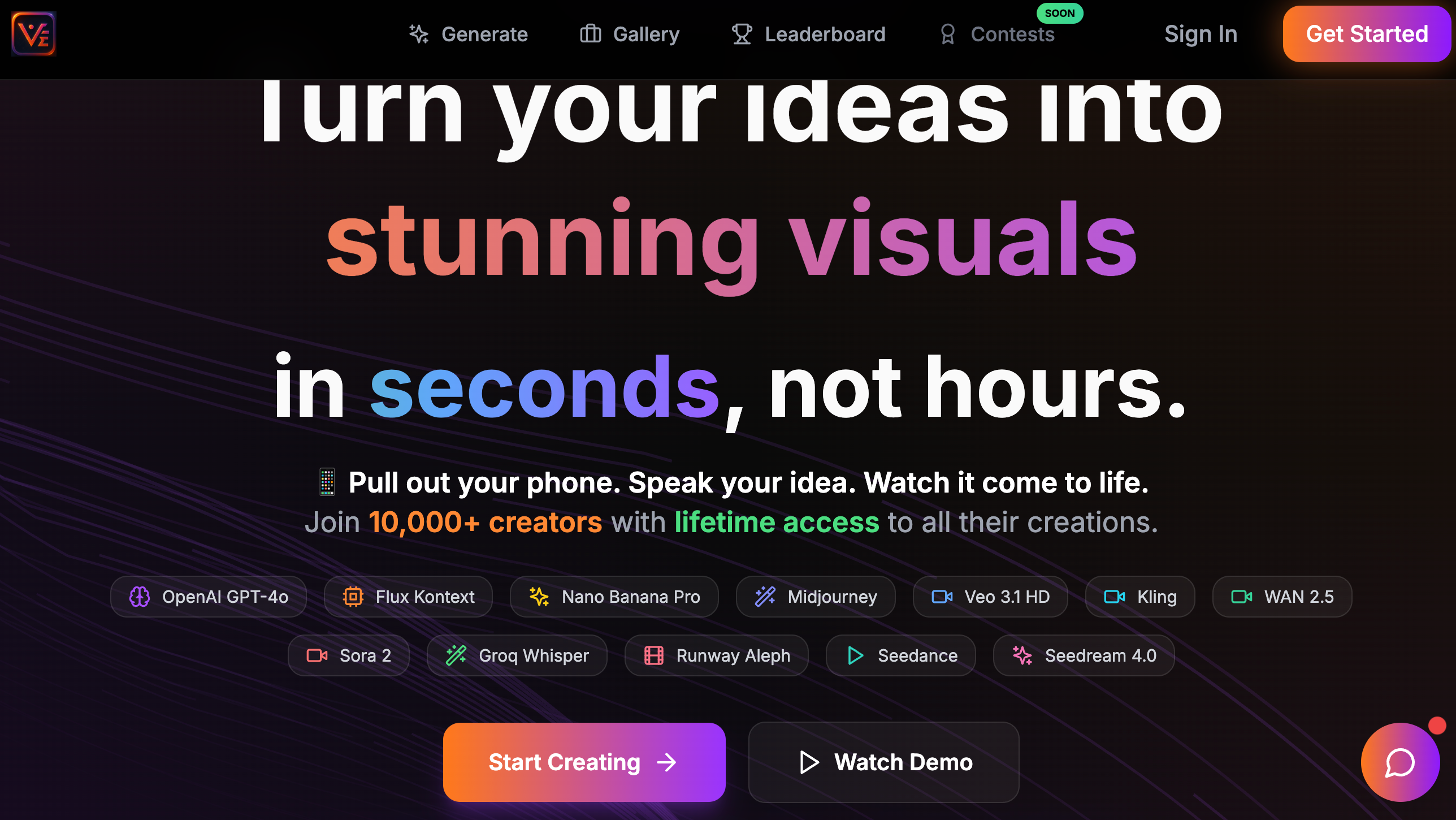 V.Y.B.E是一款移动端的图像/视频生成应用,用户可以通过语音或文字输入快速生成图像或视频,并支持换装和场景替换功能。