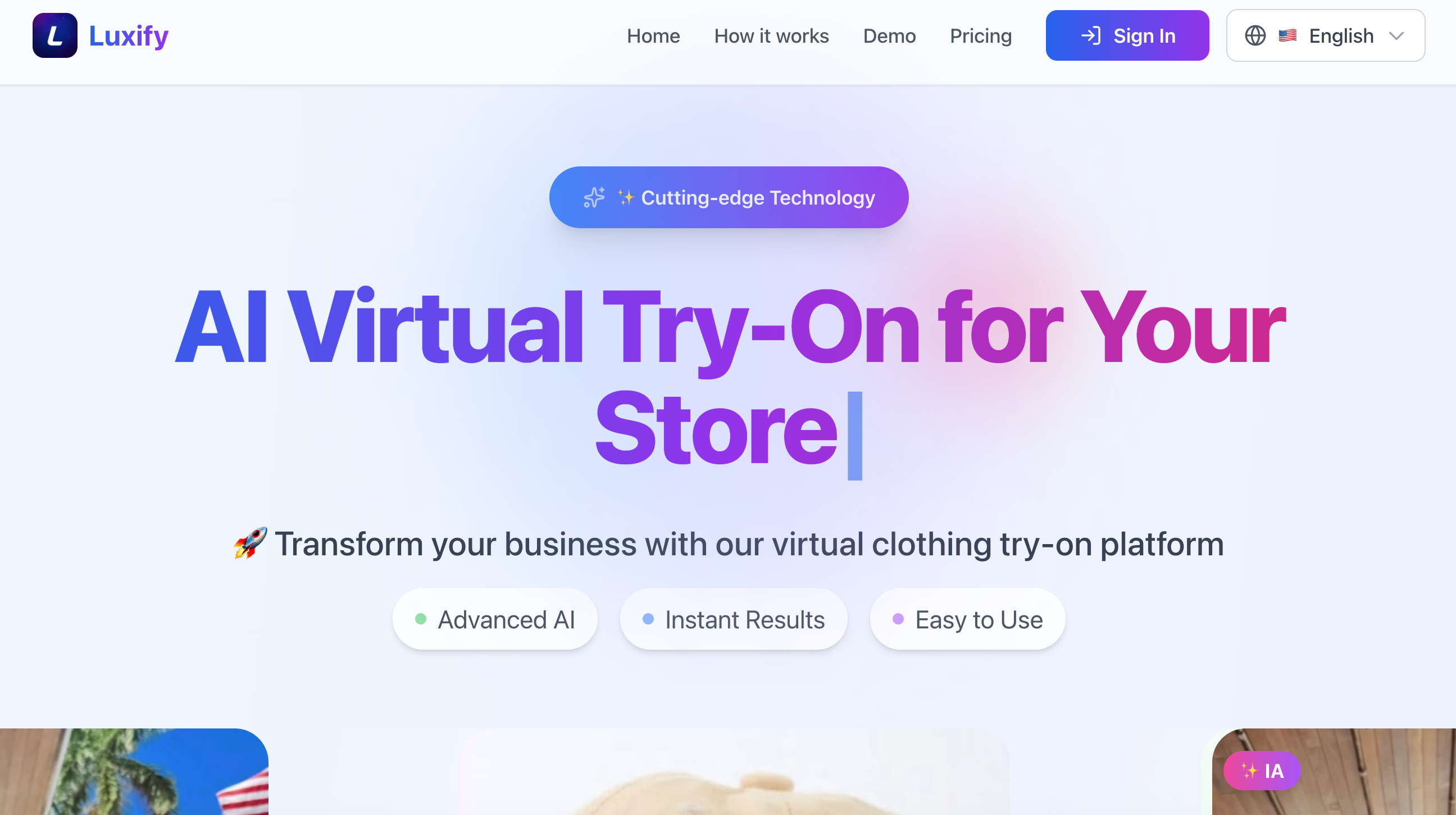 Luxify是一款AI驱动的虚拟试穿平台,让小型零售商的顾客能够上传照片并在线试穿任何服装,旨在减少退货率并提升在线购物信心。
