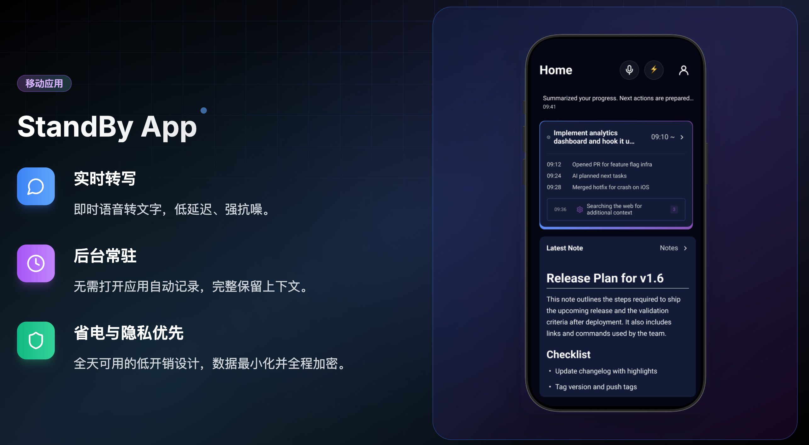 StandBy是一款always-on多模态AI软件,能够记忆、主动执行任务并保护隐私。