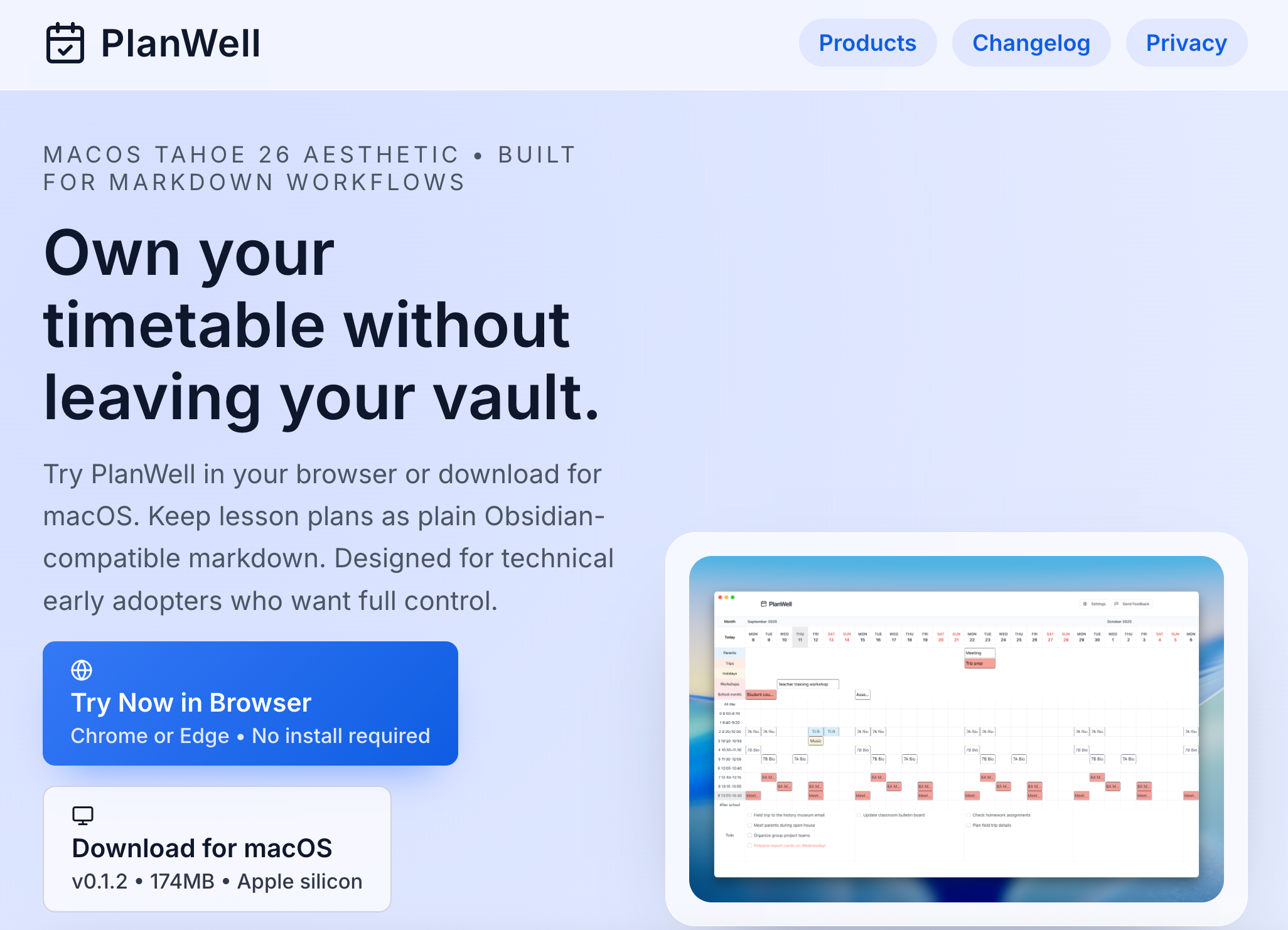 PlanWell是一款可视化时间轴桌面应用,专为Obsidian vault设计,支持多种模式,并以Markdown和YAML格式存储数据,确保用户数据的控制和互操作性。