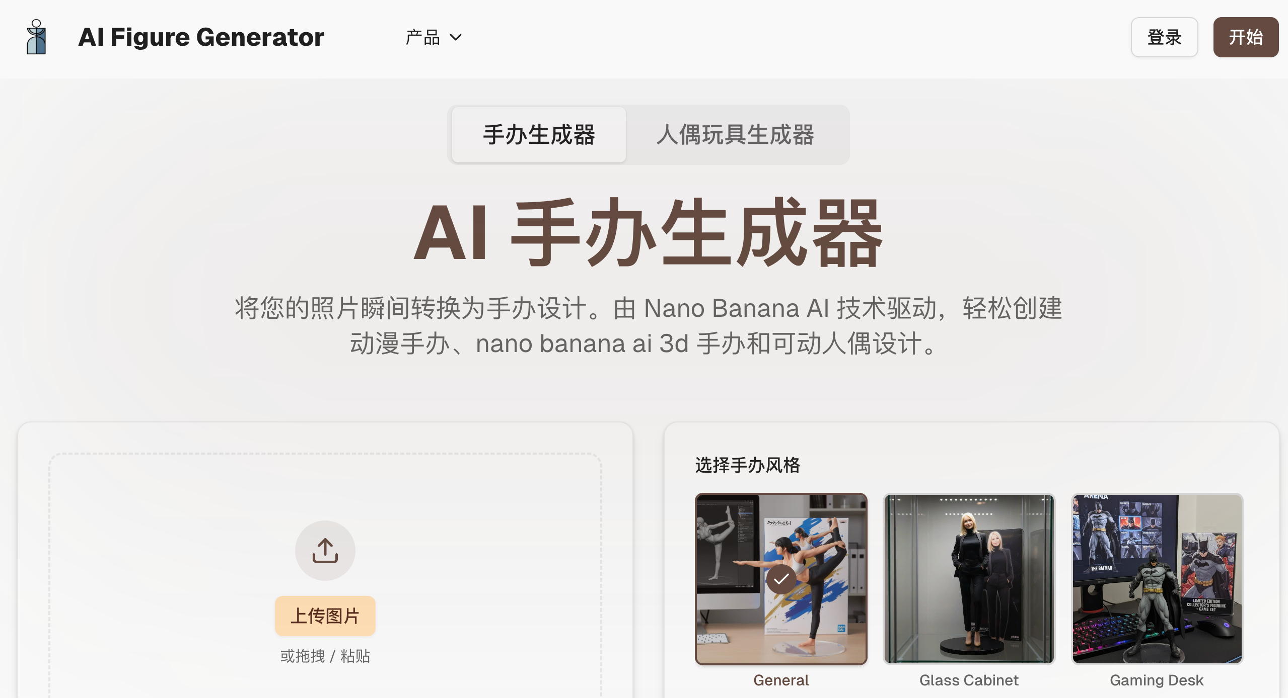 AI Figure Generator是一款在线工具,通过Nano Banana模型将照片/插画转换为具有立体感和材质感的模型/手办风格渲染图,并提供多种场景模板供用户选择。