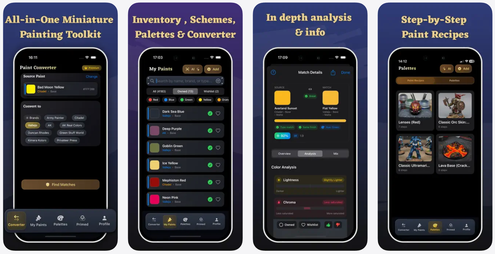 BrushForge是一款iOS应用,为模型喷涂者提供油漆转换、库存管理、步骤配方和调色板等功能,集成了AI图像识别以自动扫描油漆。