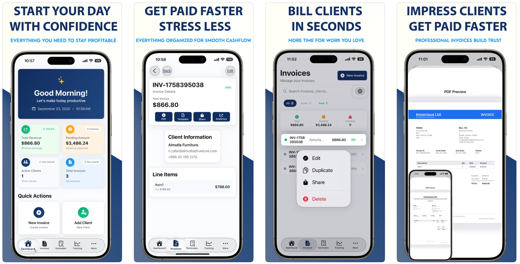 Invoicious是一款iOS原生发票生成器,专注于流畅的用户体验,提供智能保存和即时PDF生成功能。