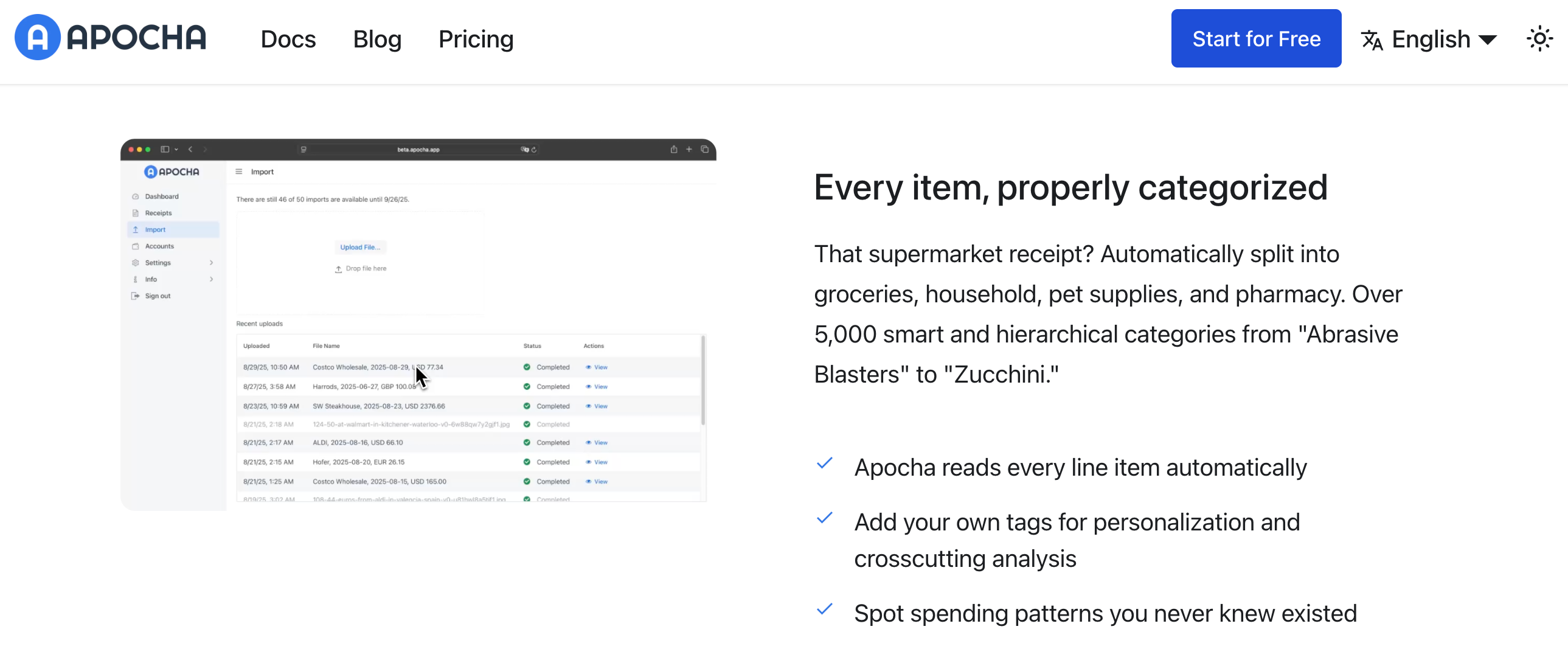 apocha是一款费用跟踪应用,通过自动分析收据照片、支持多币种、详细自动分类和灵活的仪表板,帮助用户进行精细化的财务分析。