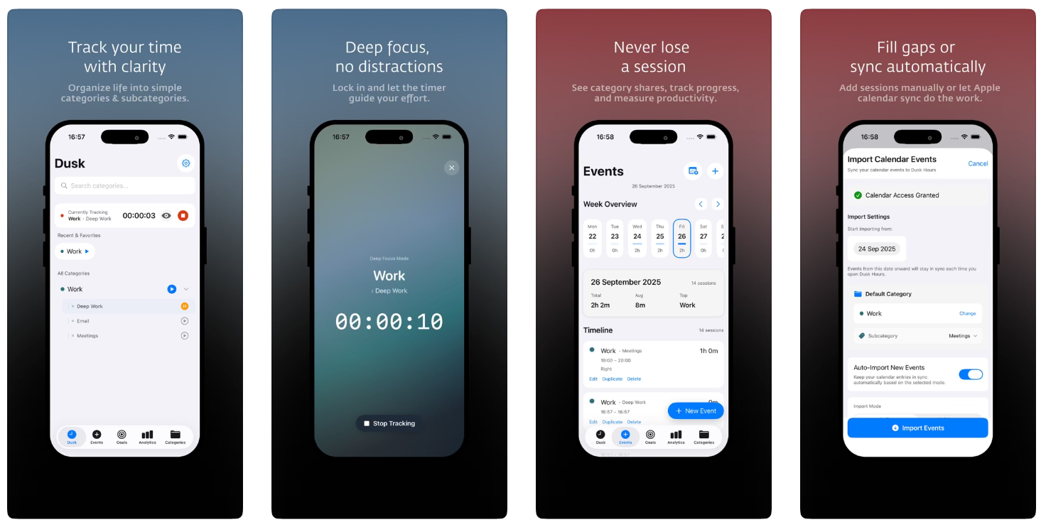 Dusk Hours是一款极简时间追踪应用,帮助用户在生活混乱时保持专注。