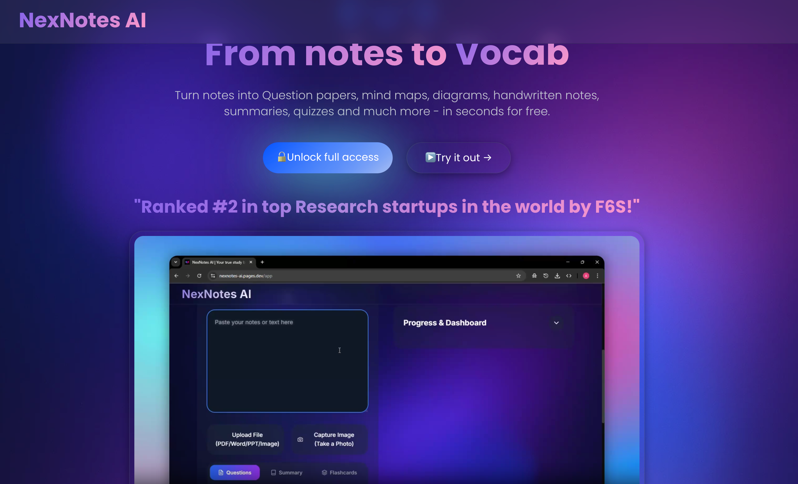 NexNotes AI是一款免费的AI学习工具,支持文件上传,提供问题解答、思维导图、测验、词汇提取等功能,并可定制学习计划。