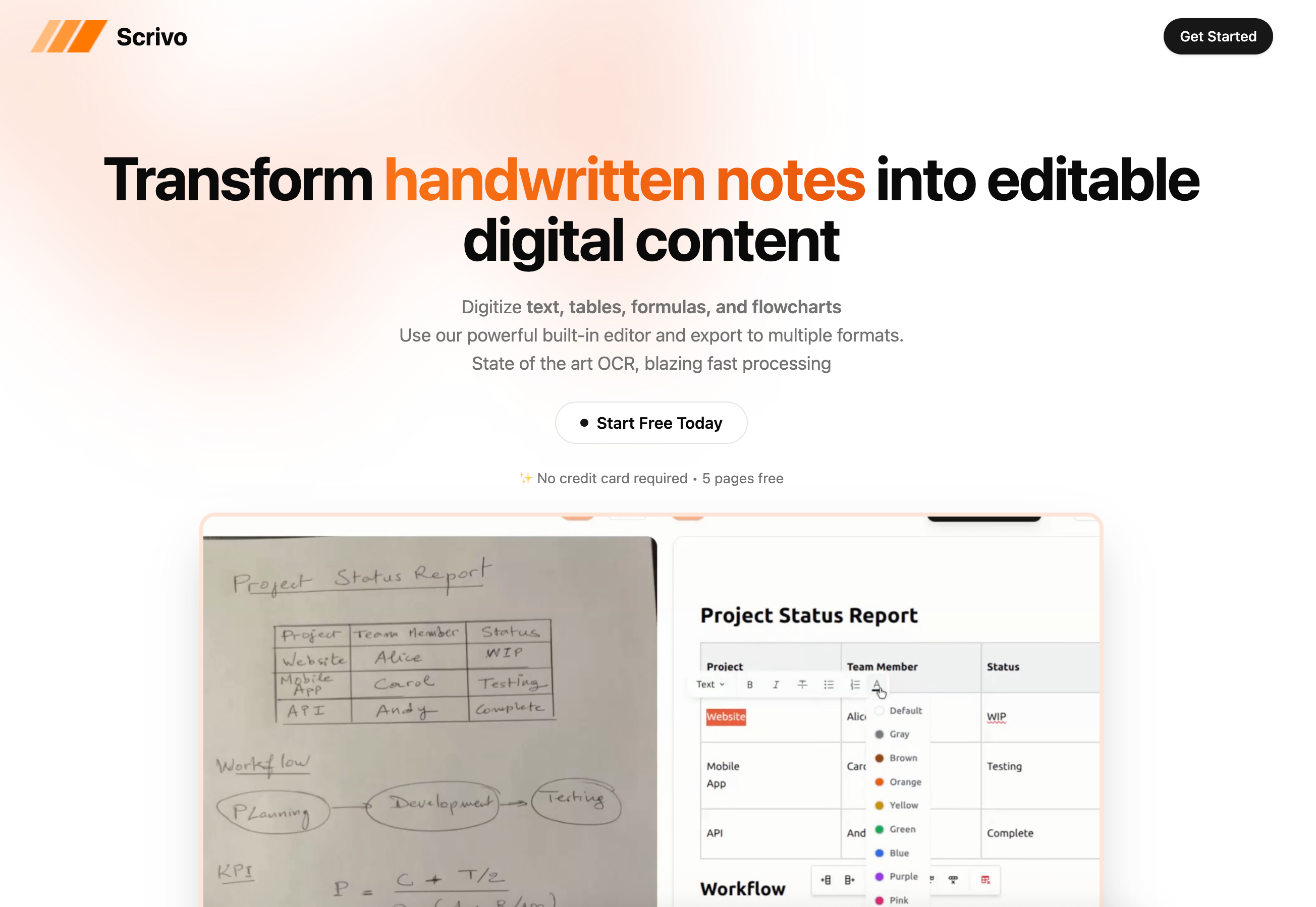 scrivo是一款将手绘流程图转换为可编辑Excalidraw图表的工具,支持上传手绘图像并导出为PDF、Markdown或ODT格式。