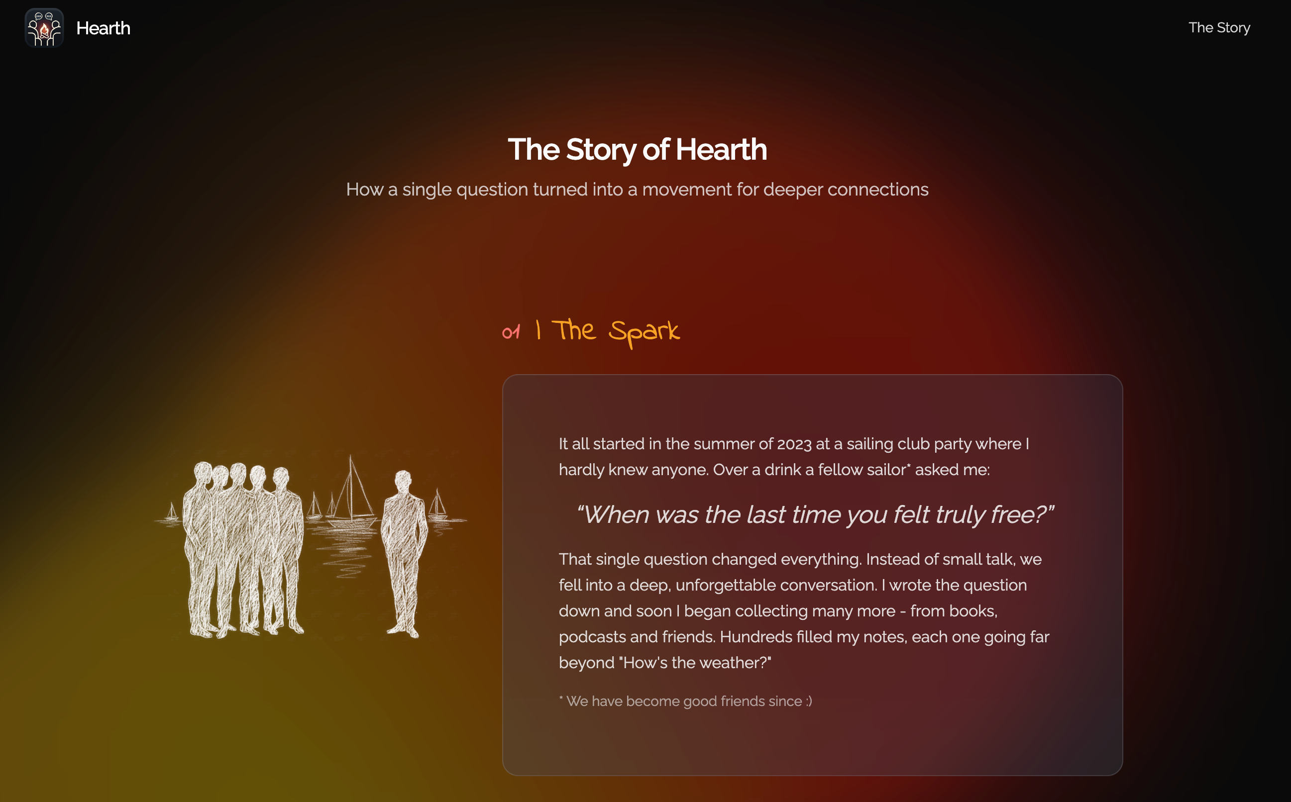 Hearth是一款帮助用户进行深度对话的免费应用,提供数百个深度交流问题,旨在推动用户超越小谈话,激发有意义的交流。