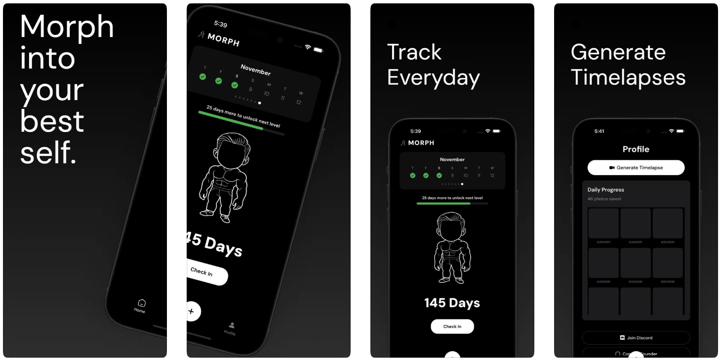 Morph是一款健身打卡应用,通过记录用户的健身频率来激励坚持锻炼,用户的虚拟头像会随着健身天数的增加而变大,缺勤则会缩小,同时提供iOS小组件以增强用户的动力。