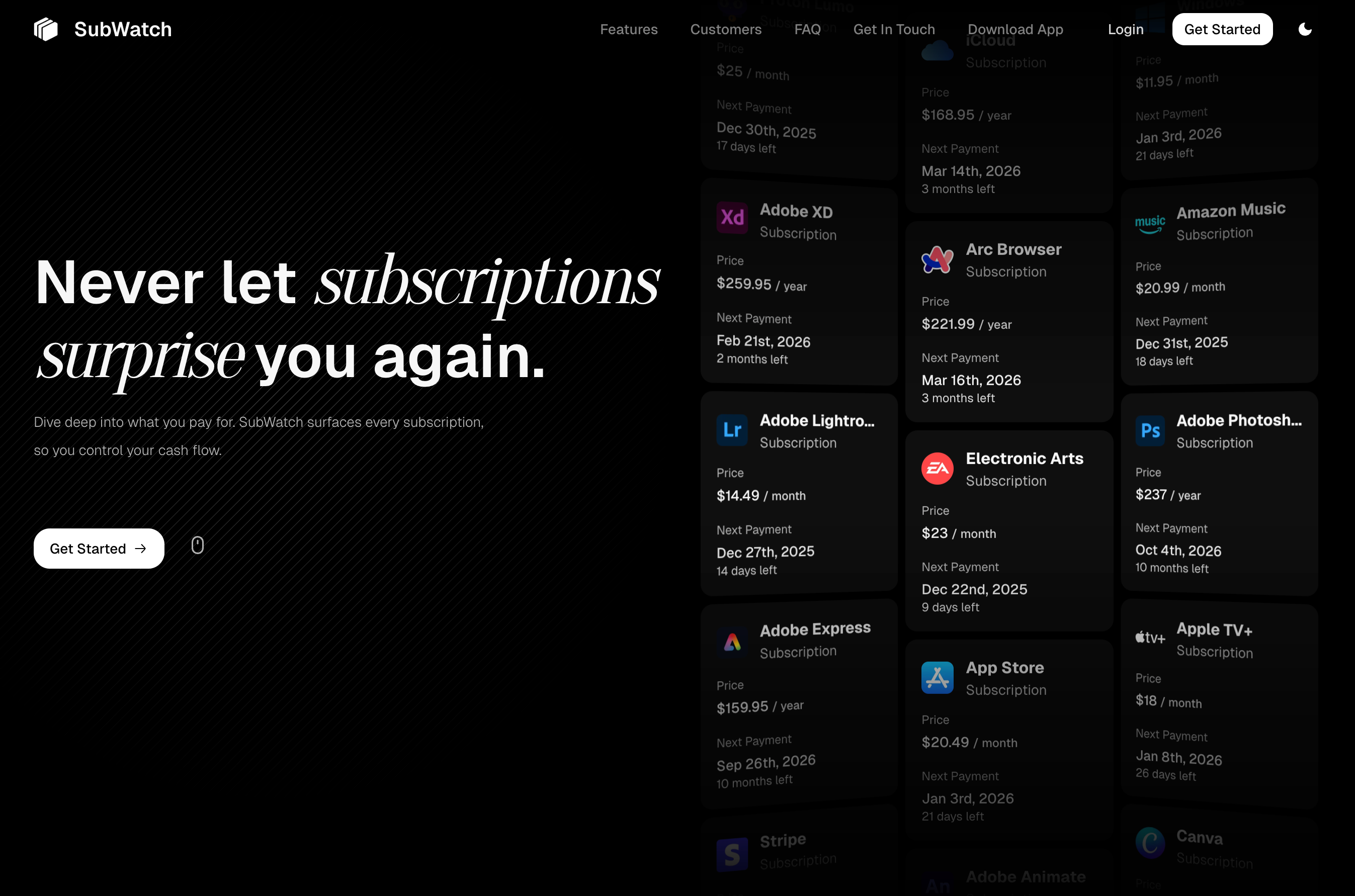 Subwatch是一款免费的订阅追踪Web应用,提供续订提醒和消费图表,并可作为PWA安装至手机。
