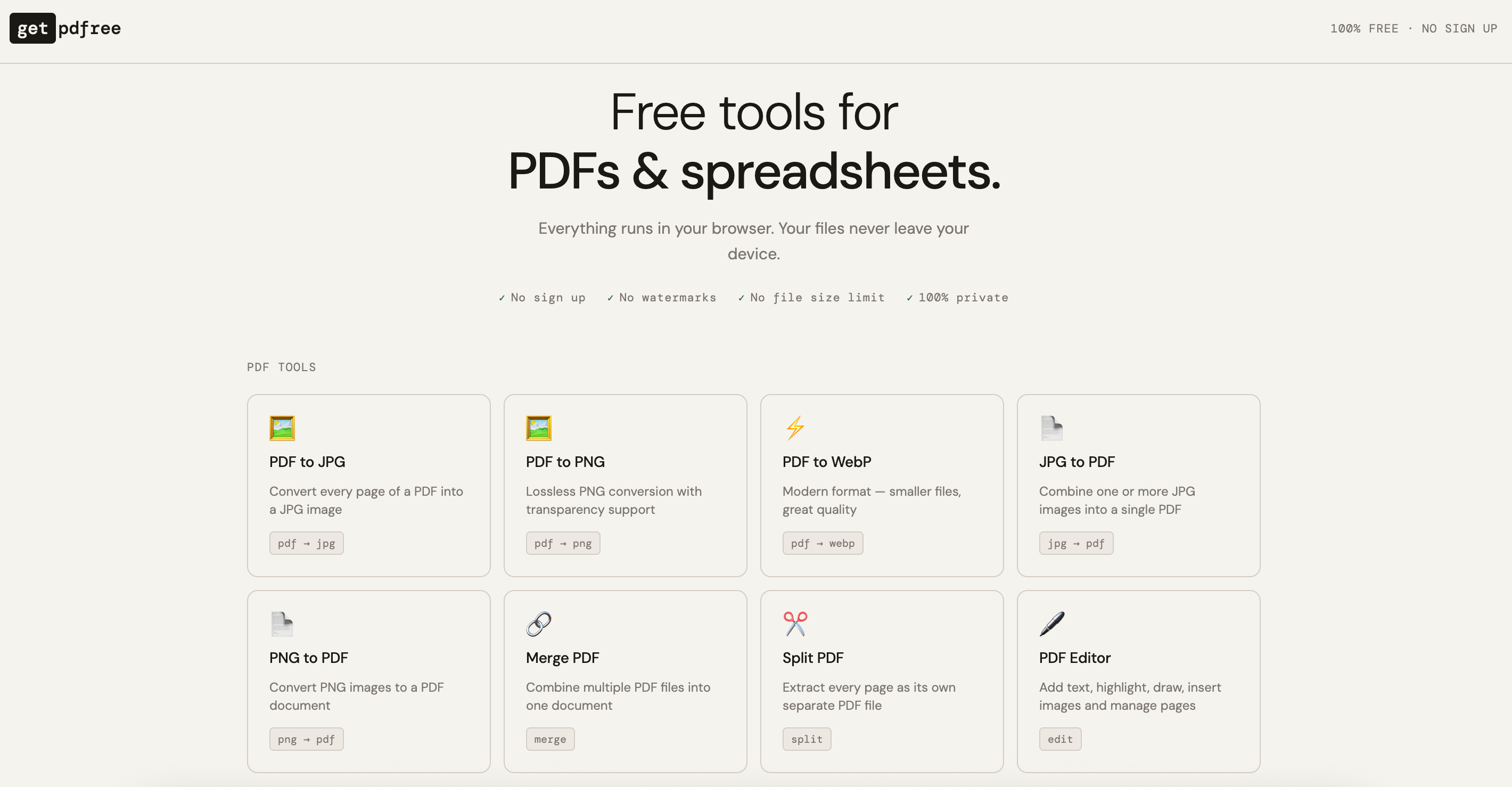 GetPDFree是一个在线PDF工具,提供合并、拆分、转换等功能,无水印且无隐藏限制。