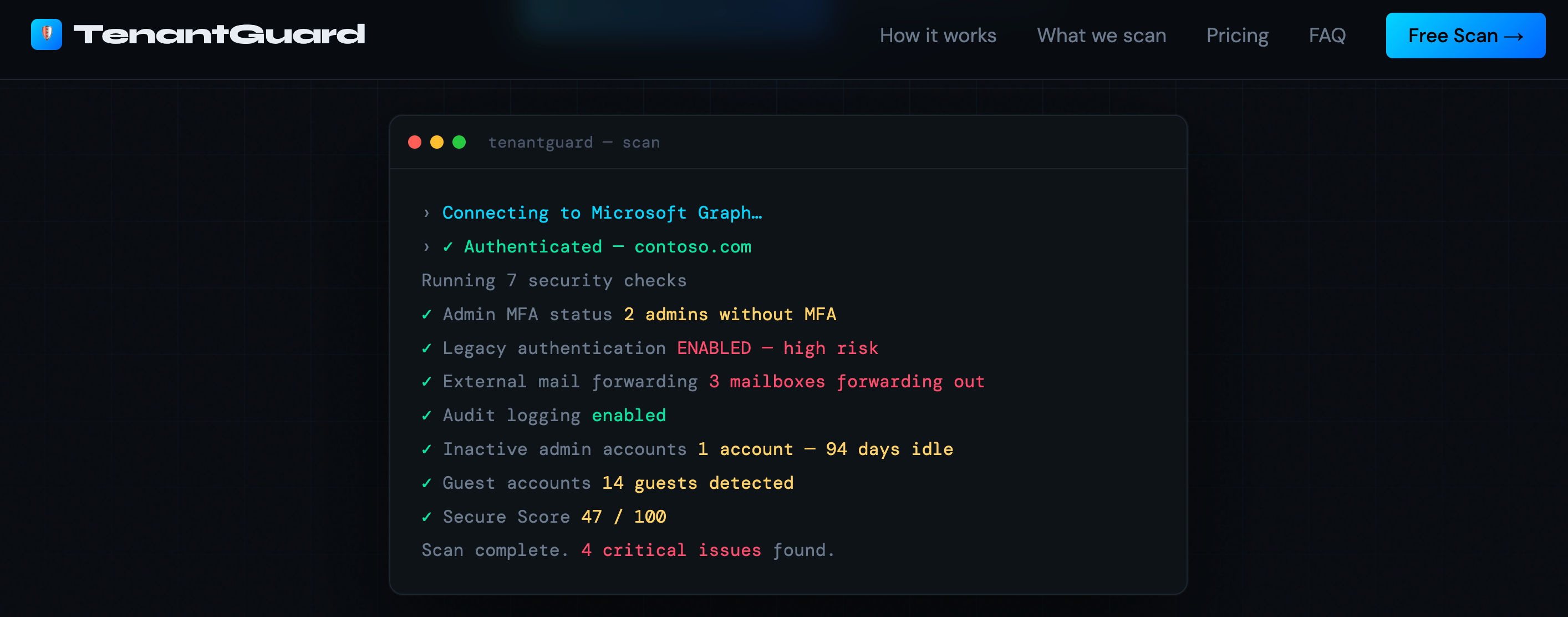TenantGuard是一款Microsoft 365安全扫描工具,可检测配置风险并支持一键修复。