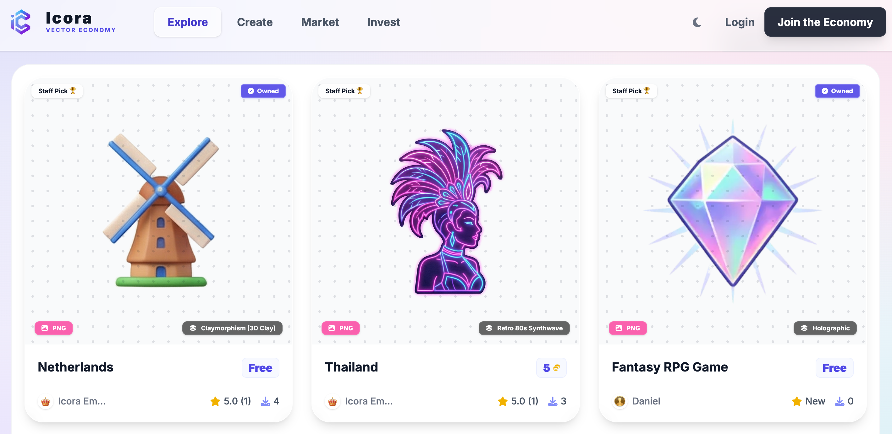 Icora是一款AI设计资产生成应用,支持创建编辑并售卖图标、插画与SVG/PNG素材包。