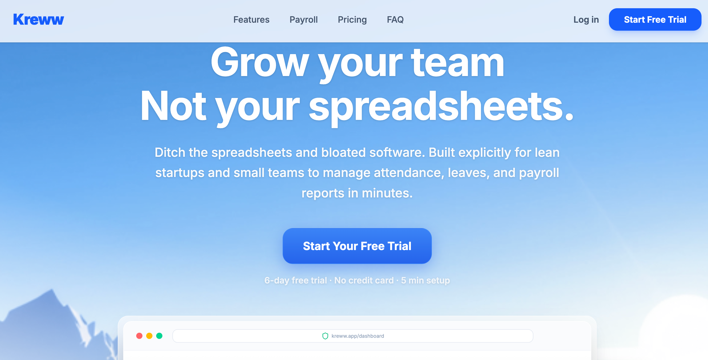 Kreww是一个面向小型团队的轻量化HR应用,可管理出勤、请假并自动生成工资条。