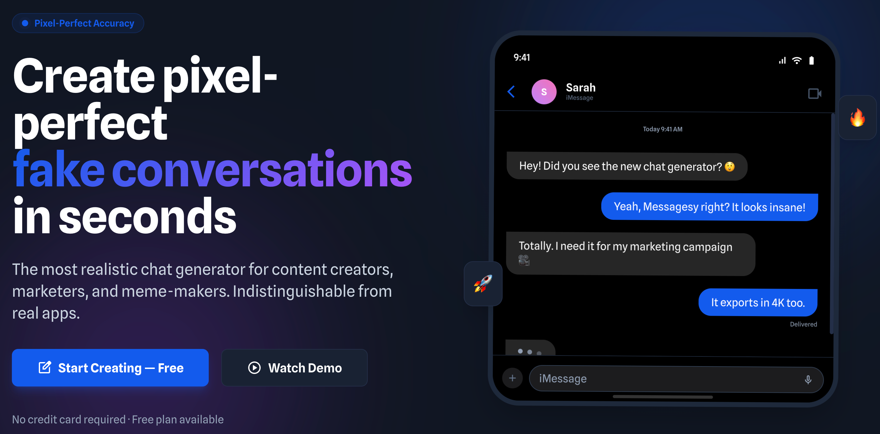 Messagesy是一款浏览器内运行的假聊天与社交媒体截图生成工具,支持多平台聊天样式与贴文编辑。