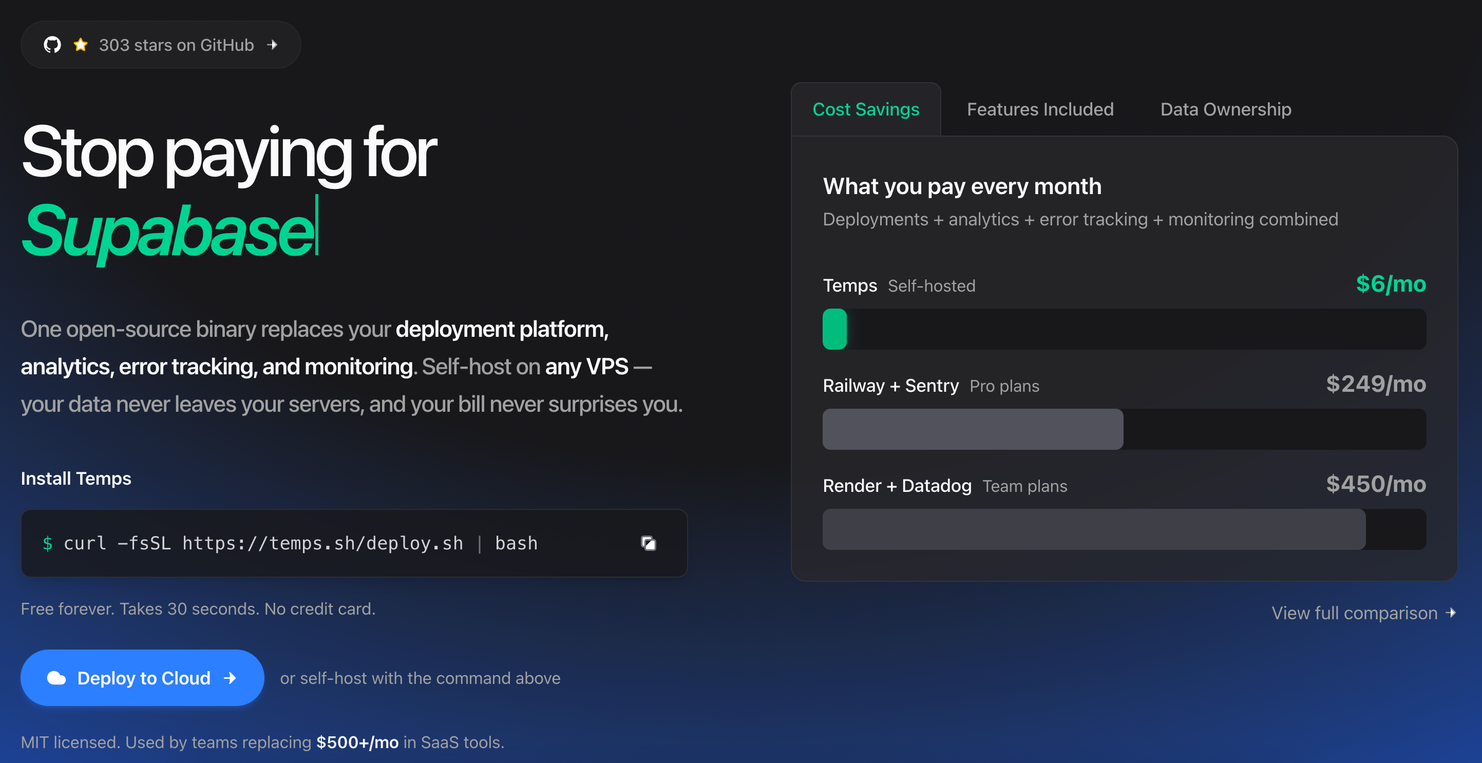Temps是一个开源一体化开发运维工具,集成部署、监控、分析、数据库托管与 AI Gateway。
