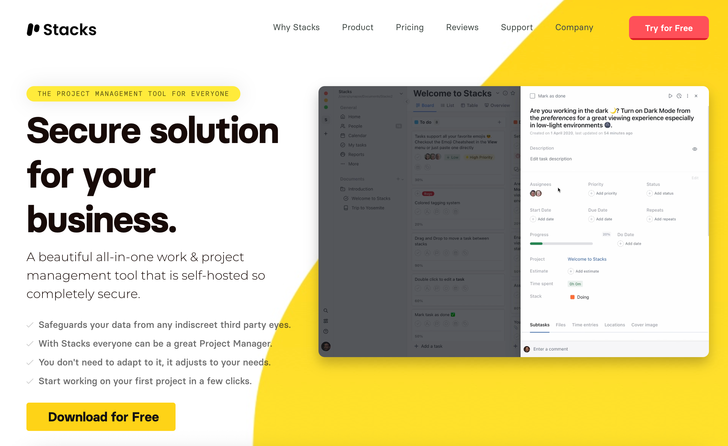 Stacks2是一款类 Trello 的 macOS 看板应用,支持离线使用与本地部署,强调数据自主和隐私。