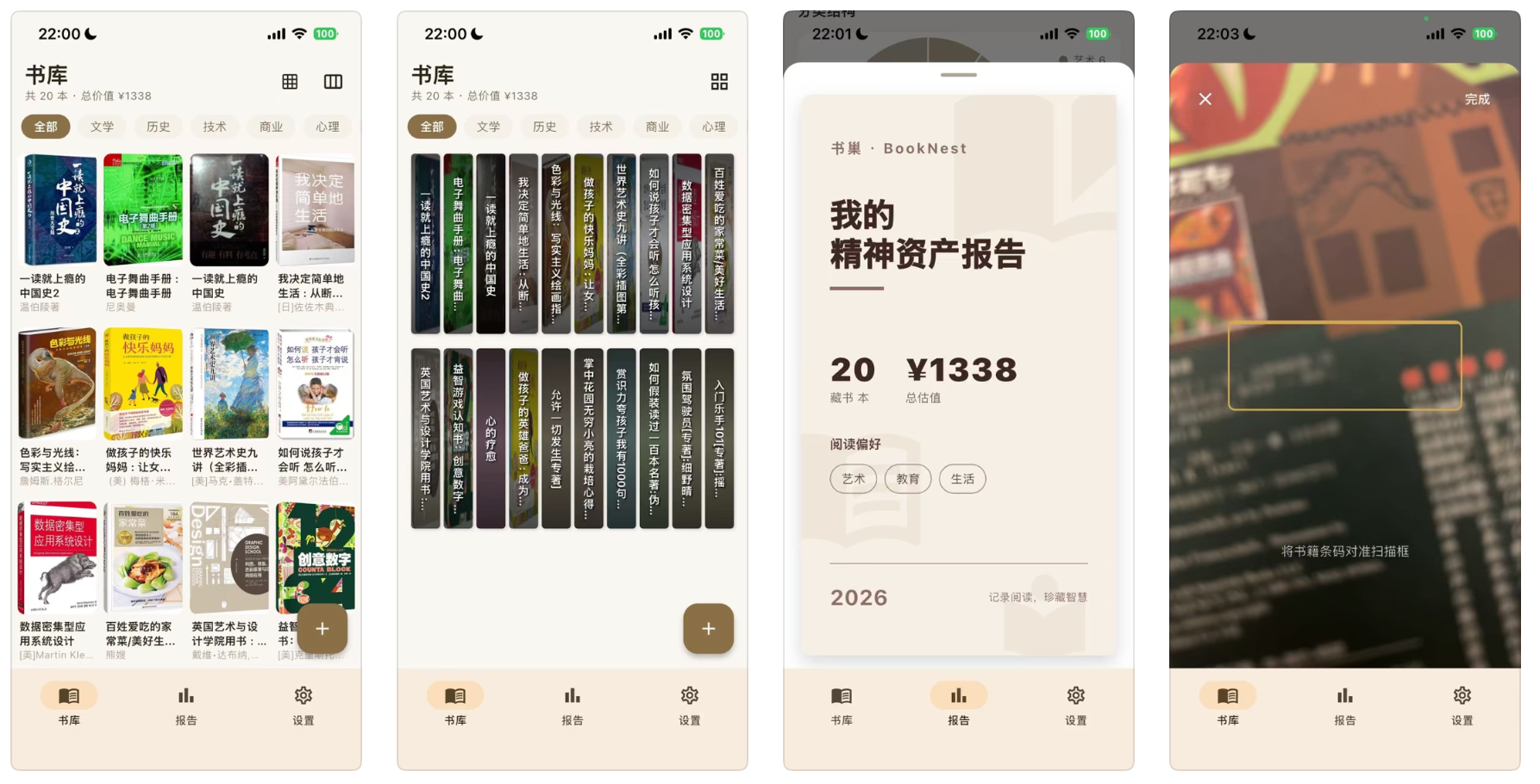 书巢是一款家庭藏书管理应用,支持扫码和ISBN查询整理书籍,并统计图书资产。