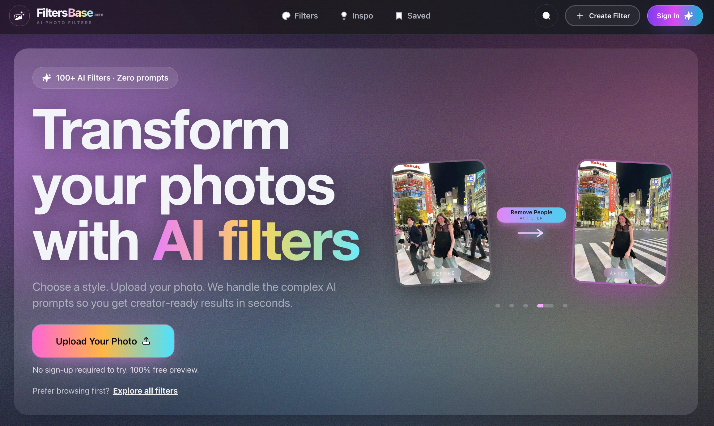 FiltersBase是一款生成式AI图像滤镜应用,可将复杂提示词与模型设置封装为可复用滤镜。