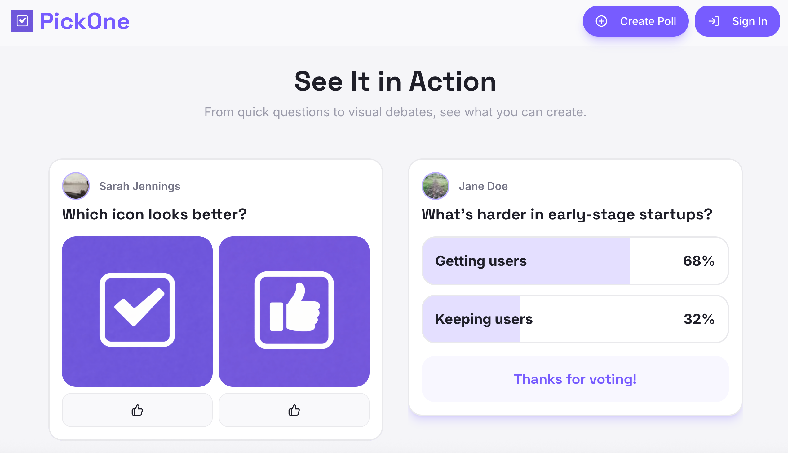 PickOne是一款在线投票工具,支持文本、图片和视频选项,无需注册即可跨平台分享投票。