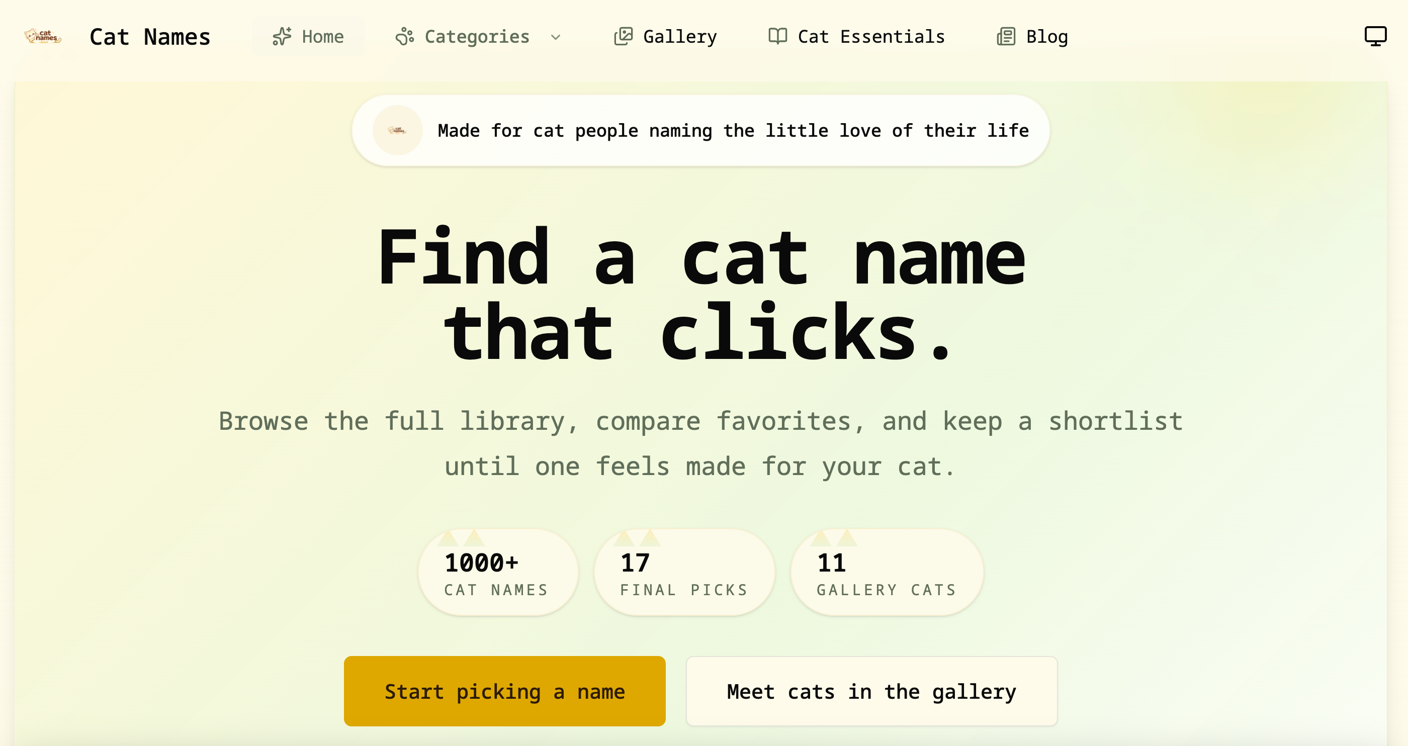 catnames是一个给猫起名的筛选网站,支持按性别、风格、颜色氛围等条件挑选名字。