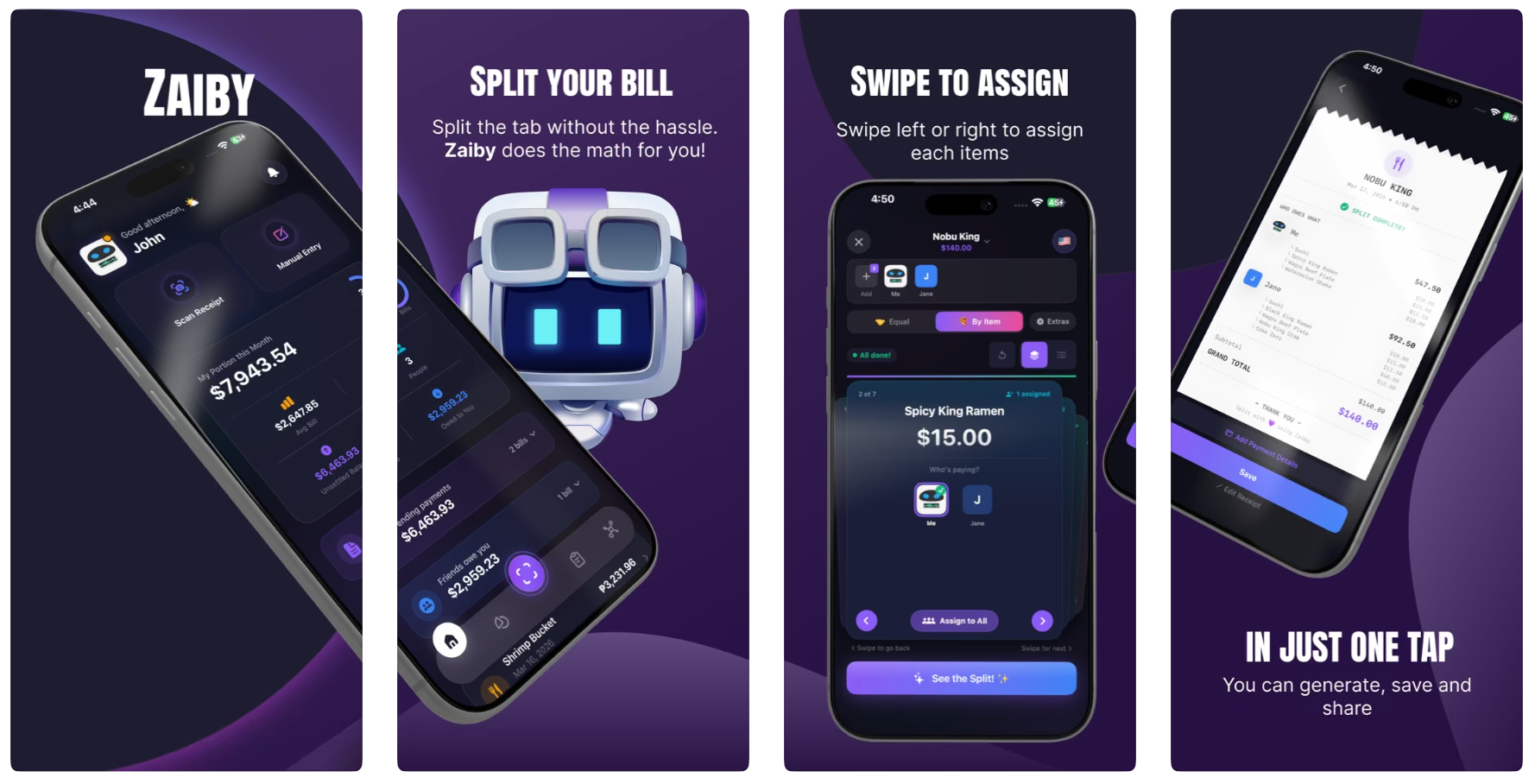 Zaiby是一款收据扫描与开销分摊应用,支持AI识别票据、按物品拆账、多币种与支出图表。