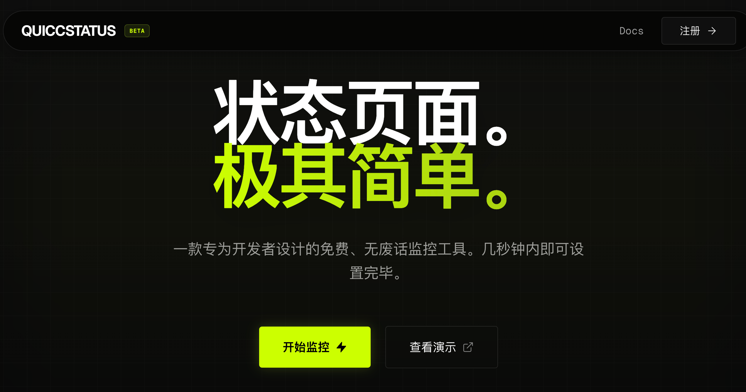 QuiccStatus是一个简洁的状态页与可用性监控工具,支持HTTP/TCP/ping监控和公开状态页。