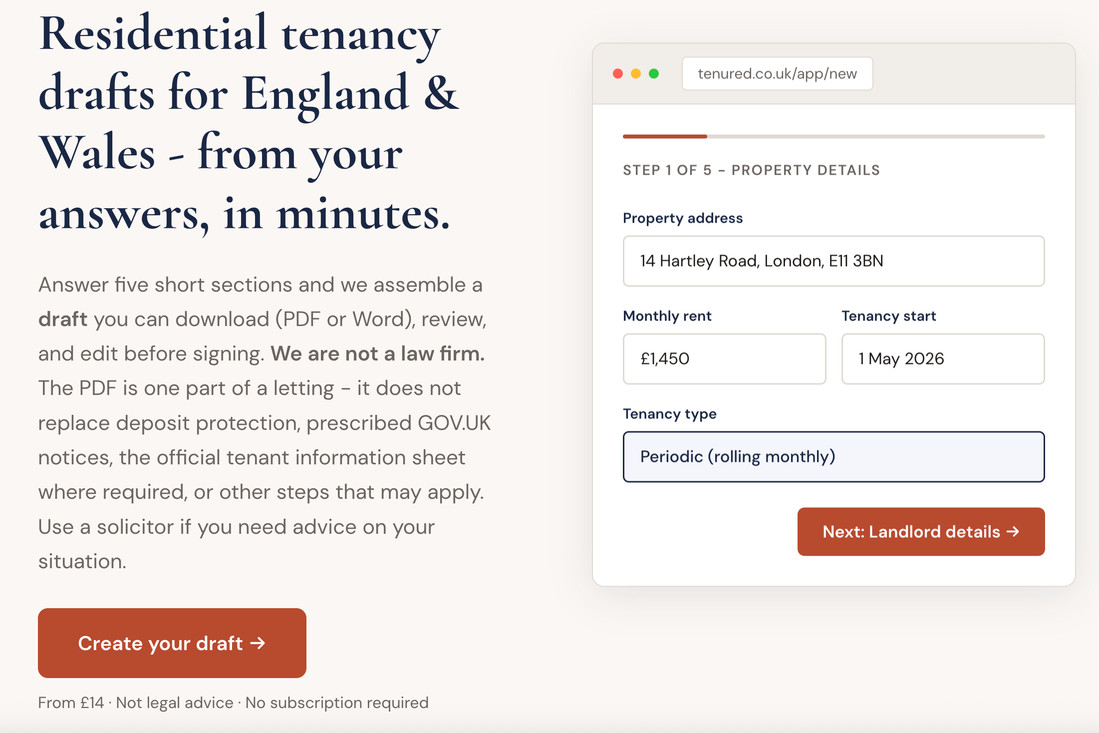 Tenured是一个英国租赁协议生成器,用户回答约12个问题后5分钟内可生成符合2025年新法的Assured Periodic Tenancy协议,支持PDF和Word导出,集成AI法律语言重写与押金校验功能。