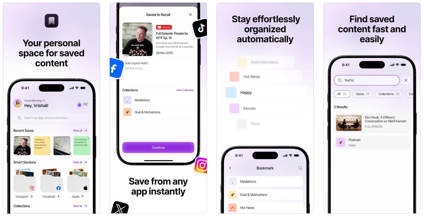 Recall是一款书签收藏应用,支持从任意应用通过分享功能保存链接,提供搜索与集合管理功能,帮助用户保存和快速检索网络内容。
