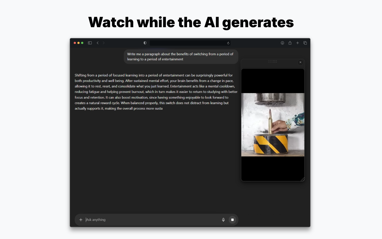 MicroReel是一款浏览器扩展,AI思考时自动播放Shorts视频,减少等待分心。