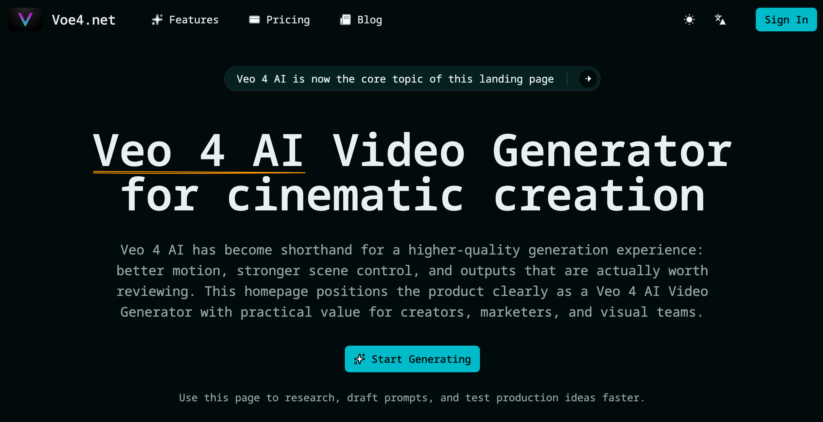 Veo 4 是一款在线 AI 视频生成器网站,提供 AI 视频创作工具清单,支持快速生成视频内容。
