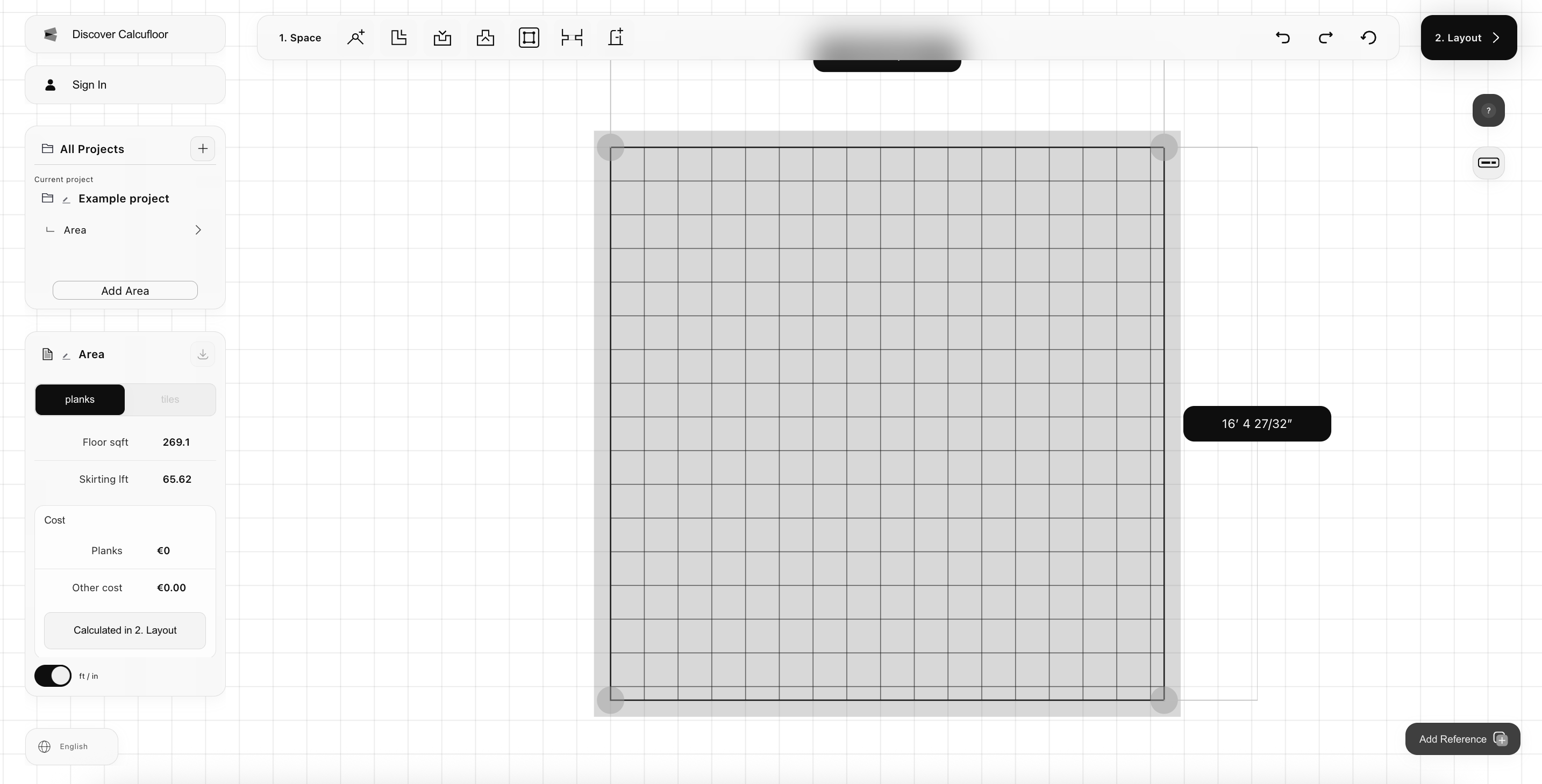 Calcufloor是一款基于构件的地面铺装布局与材料用量模拟器,通过平面几何计算实现精准排布与用量推导。