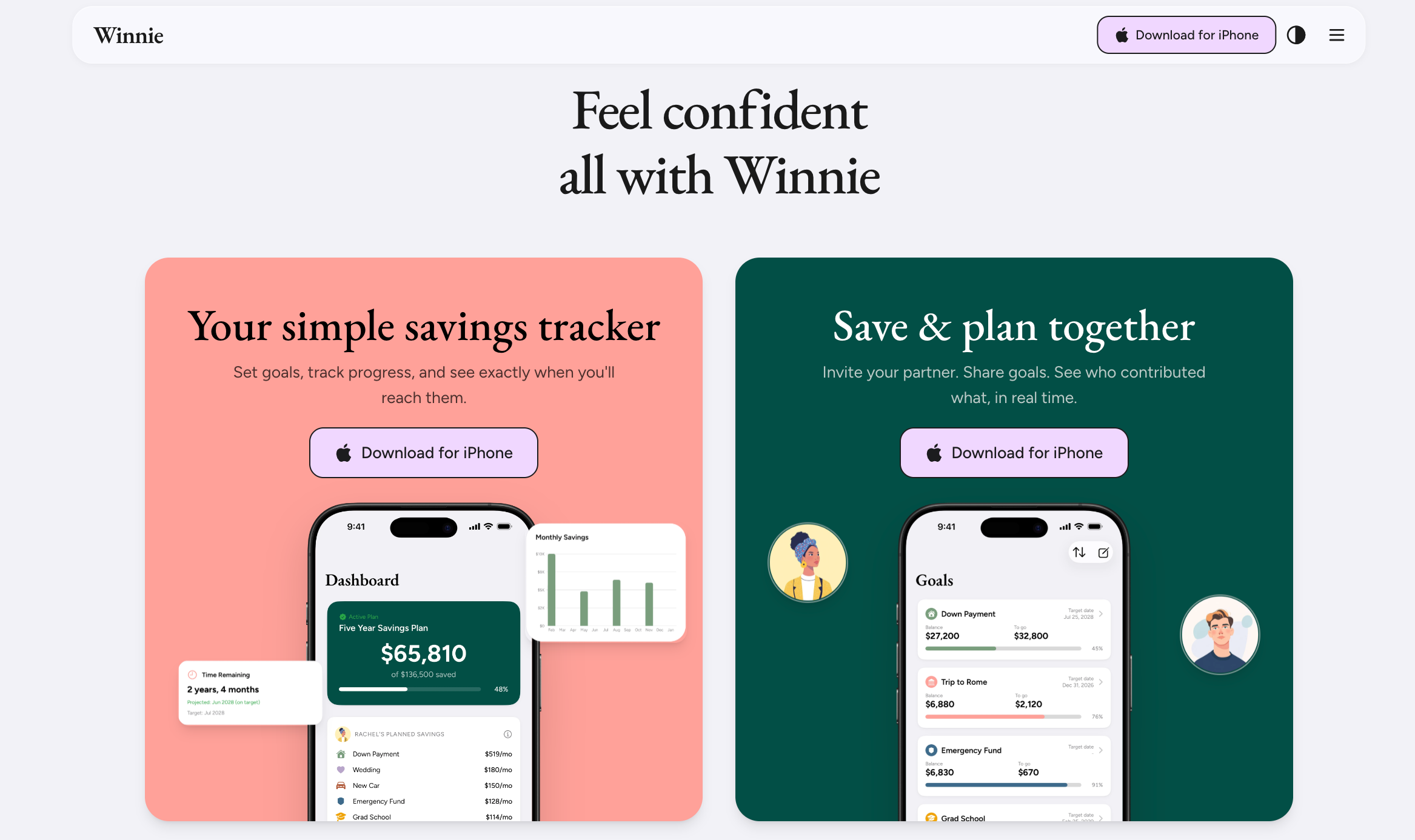 Winnie是一款反记账存钱应用,支持离线使用与夫妻实时共享,隐私优先,多目标储蓄计划比较。