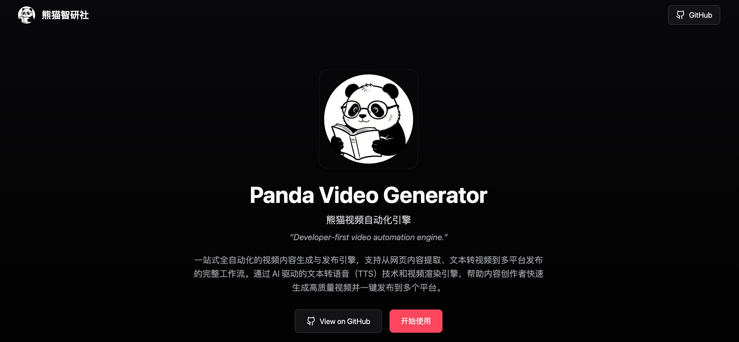 Panda视频自动化是一款面向开发者的开源工具,可一键实现从文章到视频的全流程自动化生成与发布。