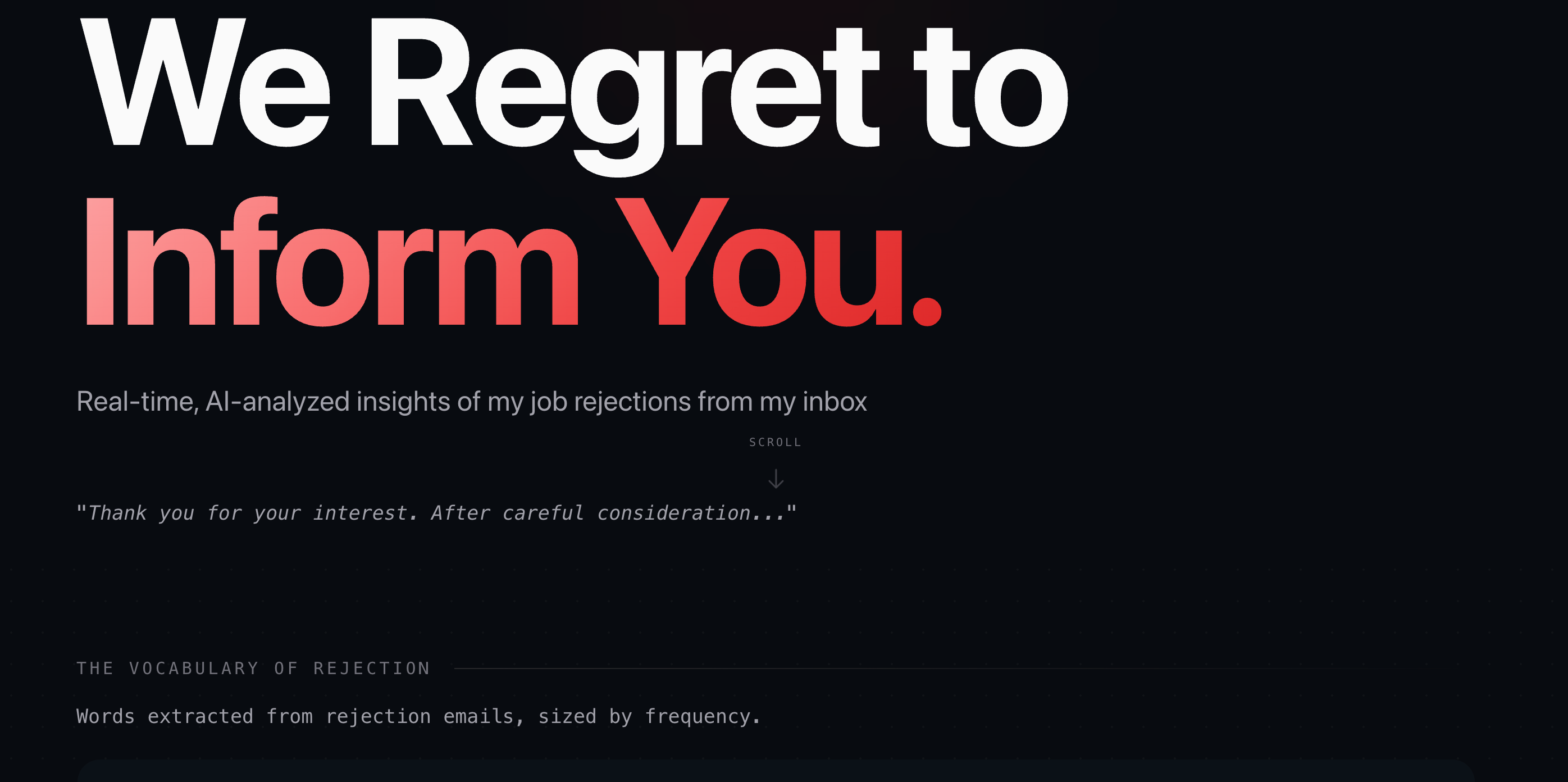 Rejectlytics是一款将拒绝邮件游戏化的实时分析工具,帮助用户以趣味方式追踪和管理求职拒信。
