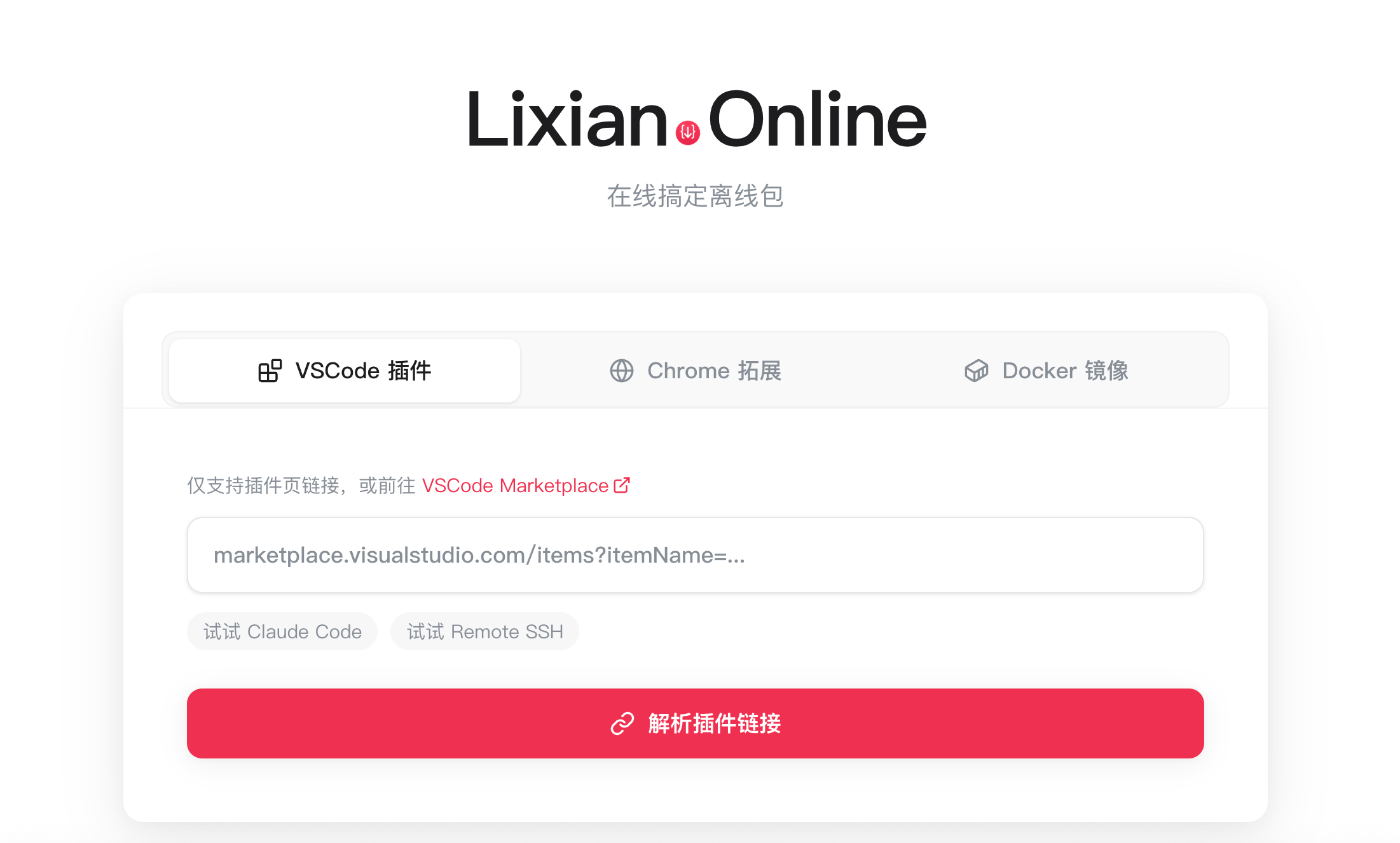 lixian是一个在线离线包下载工具,支持获取VSCode插件、Chrome扩展和Docker镜像的离线包。
