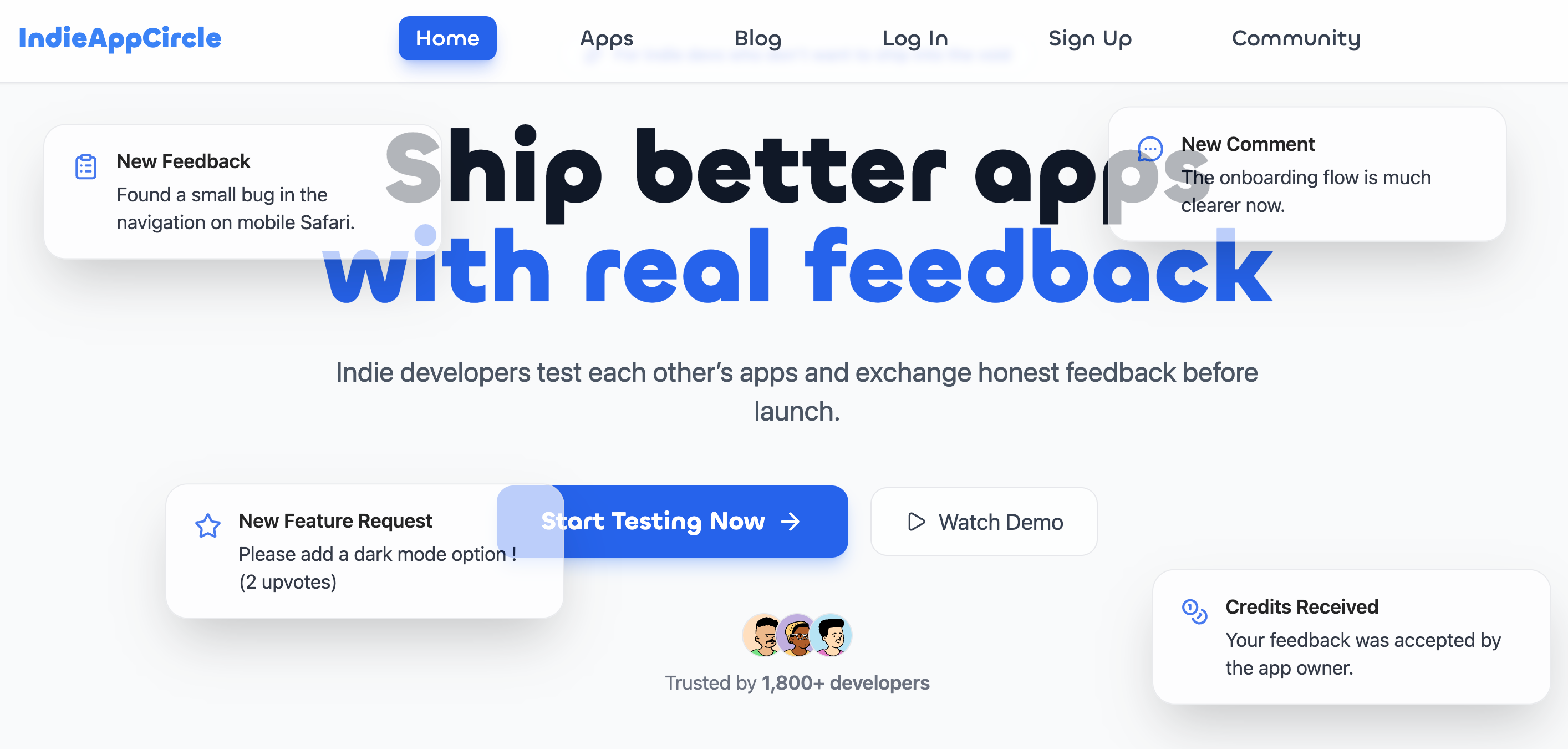 IndieAppCircle是一个让小型应用开发者上传应用、他人通过测试换取积分并提供真实用户反馈的平台。