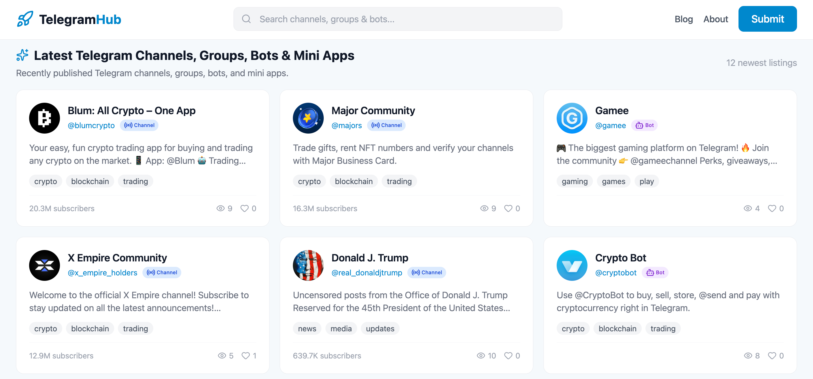 telegramhub是一个Tg频道、群组和机器人导航网站,用户可提交内容,聚合Telegram生态资源。