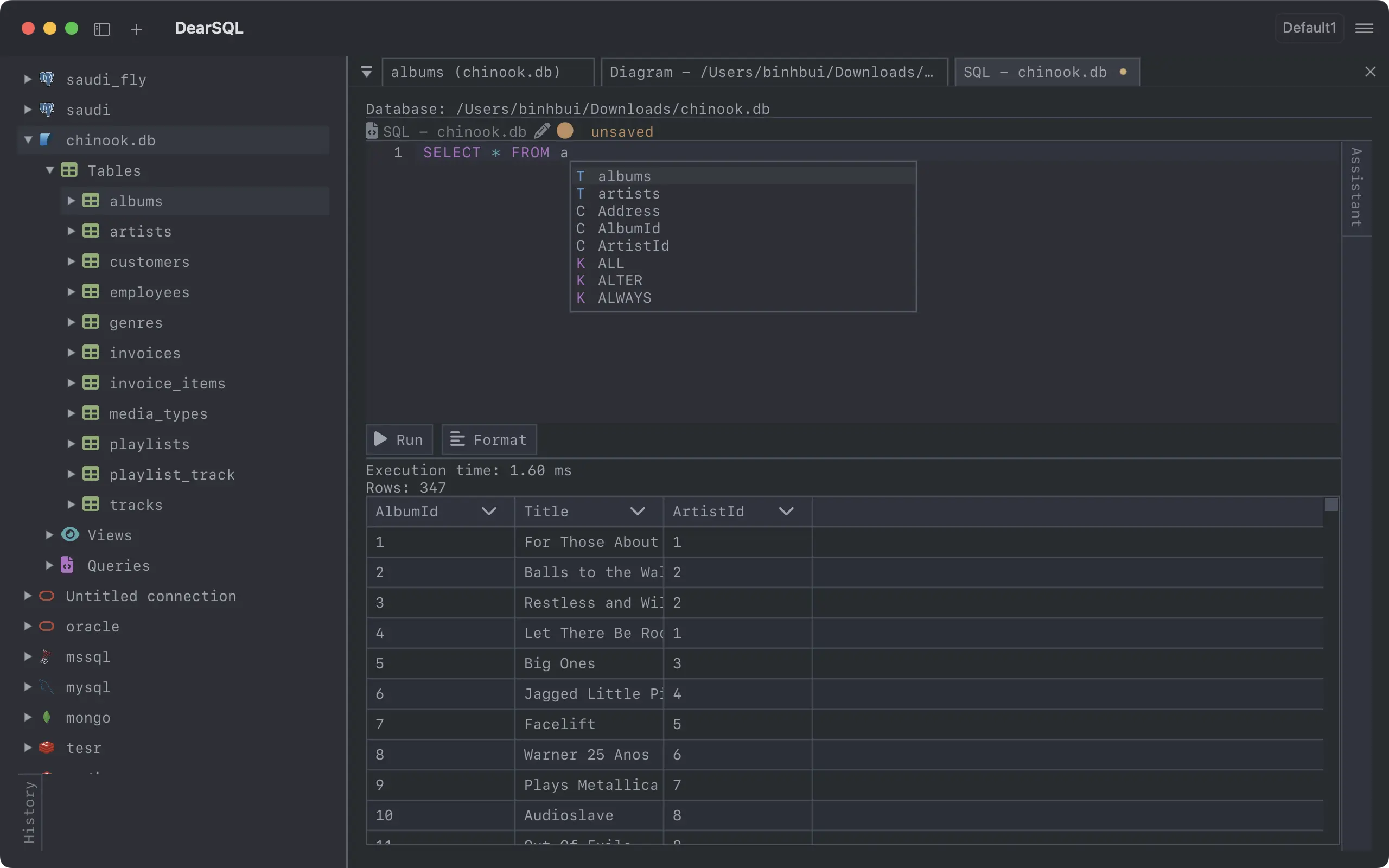 DearSQL是一款轻量级跨平台SQL编辑器与数据库管理工具,原生开发,支持macOS、Linux和Windows,免费开源。