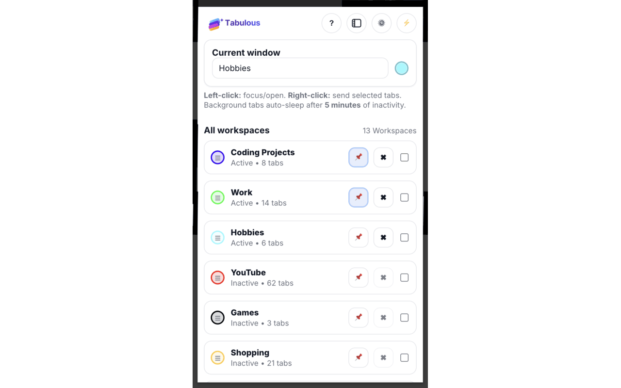 Tabulous是一款Chrome扩展,可将标签页保存为可重用工作区,并通过Crash Vault保留恢复快照,避免误关标签。